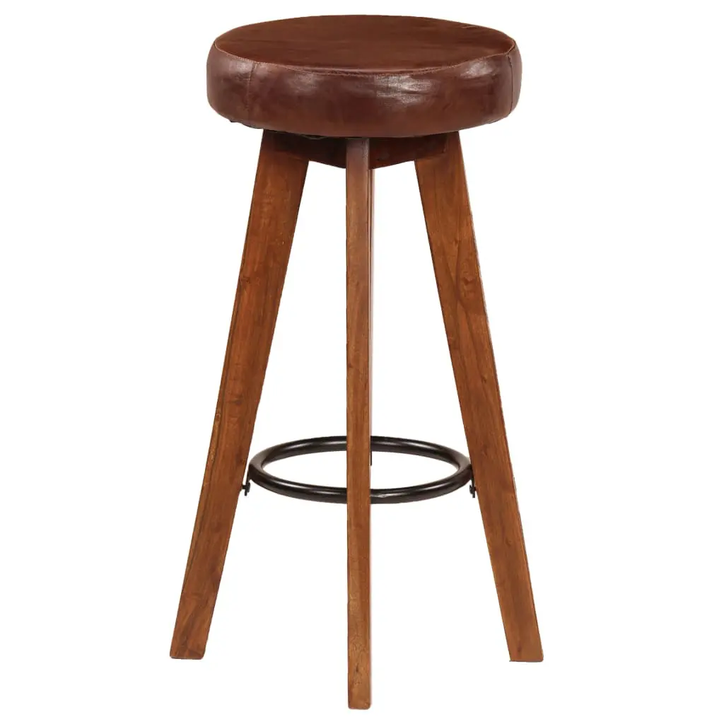 This set of 2 bar chairs oozes a rustic charm that will make a timeless addition to any home, bar or restaurant. The bar stool set is made of solid acacia wood and is highly stable and durable. Upholstered in the soft-to-the-touch real leather, the chairs provide optimal durability and comfort. Every step of the construction process is carried out with the greatest care, be it polishing, painting, or lacquering. The bar chair set is easy to assemble. Delivery includes 2 bar chairs. Important note: The grains and colours of the wood may vary from piece to piece, making each piece unique; the delivery is random.