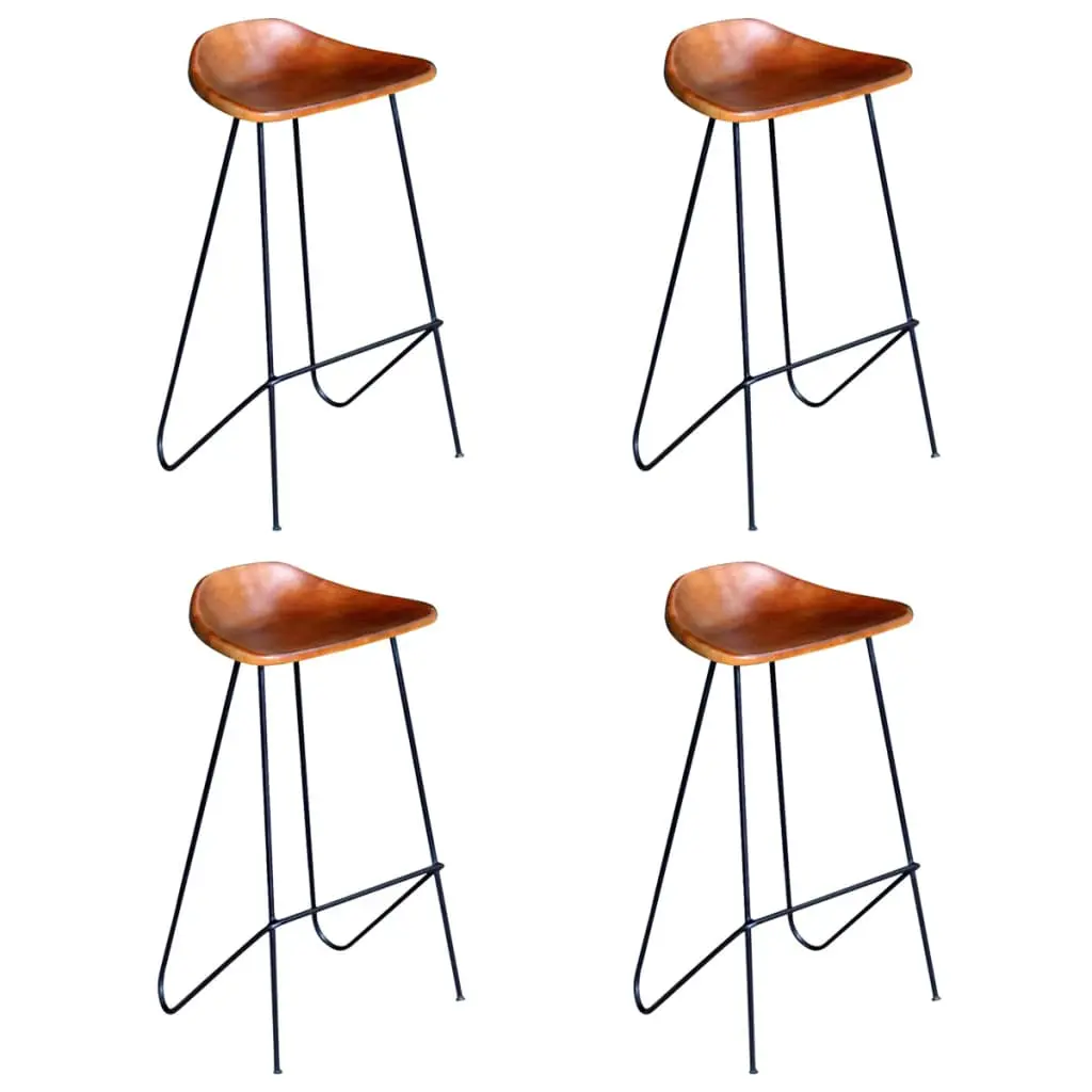 This soft and comfortable real leather bar chair has an iconic look, in keeping with the industrial style that’s all the rage right now. It will look great not only in restaurants or bars, but also in your living room or dining room at home. The upholstered genuine leather is soft to the touch and makes the stool extremely durable. The soft goat leather surface makes for a comfortable seating experience, while the solid iron legs with footrest make the stool stable and durable. Delivery includes 4 leather bar chairs.