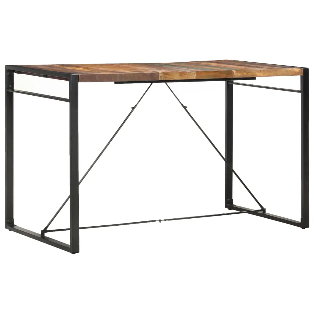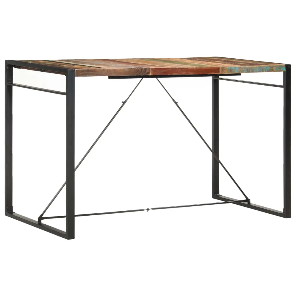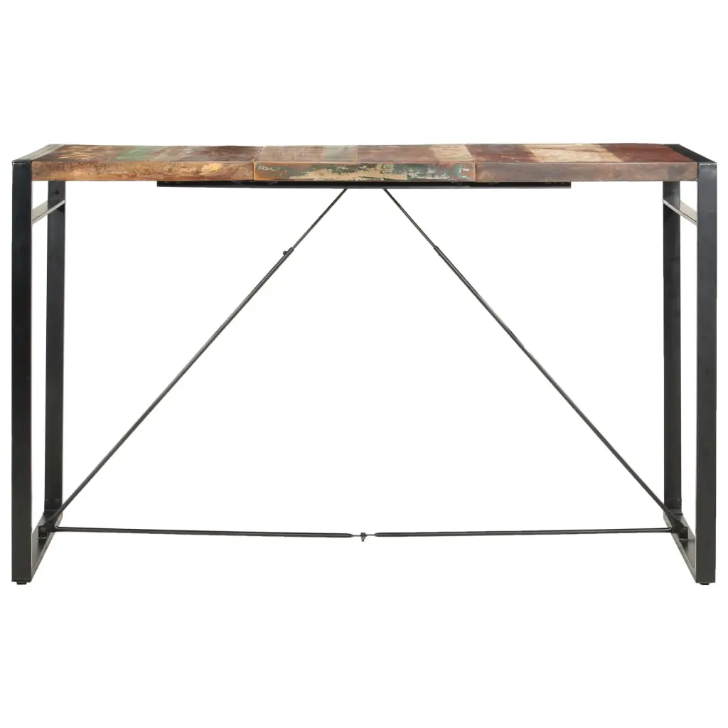 This cool wooden bar table has an industrial look and will make a distinctive addition to your kitchen or dining room. The bar table is made of the solid reclaimed wood, which means that it has the characteristics of different woods like teak, mango wood, acacia, etc. Reclaimed wood is solid, stable, durable and beautiful. Signs of wear give each piece a unique look and the steel structure adds to its spectacular industrial style. This bar table is easy to assemble. Important note: The colours vary from piece to piece, making each piece unique; the delivery is random.