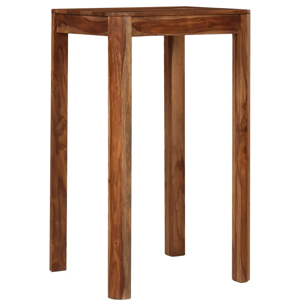 This wooden bar table oozes a modern charm that will make a timeless addition to any home, bar or restaurant. The bar table is made of solid Sheesham wood and is highly durable. Sheesham is a tropical hardwood that is famous for its rich grains and also known as rosewood or palisander. The sturdy tabletop provides a stable and secure surface on which you can place your drinks, vases, fruit bowls or other ornaments. Every step of the construction process is carried out with the greatest care, be it polishing, painting, or lacquering. The bar table is easy to assemble. Important note: The wood grains and colours may vary from piece to piece, making each piece unique; the delivery is random.