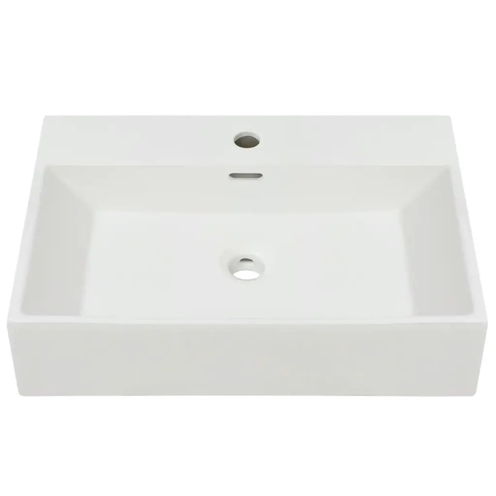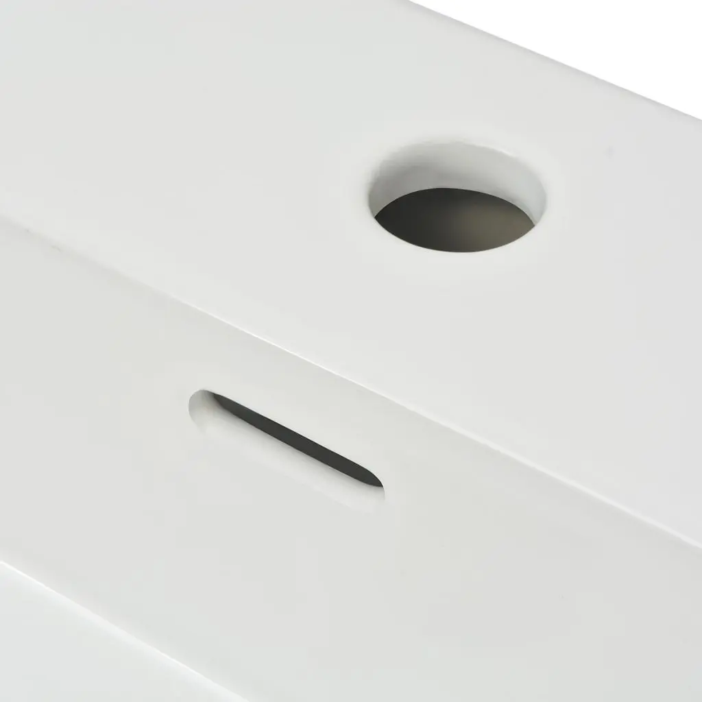 This wash basin, made of premium ceramic, will be a stylish addition to any bathroom, washroom or powder room. Its glazed surface brings itself a modern yet elegant design. This artistic ceramic basin is more than just a practical vessel for everyday use, but it is an adornment for your living space. It will definitely suit any interior style. In addition, the basin is quite easy to clean. An overflow is equipped to flow water out when it gets too full. A faucet hole of diameter 3.7-3.8 cm is included to install a tap. The drain hole is 4.5 cm in diameter. Please note that the tap and the drain are not included in delivery. If you want to wall mount this basin, it needs to be supported by a pair of brackets. Please note these brackets are not included in the delivery.