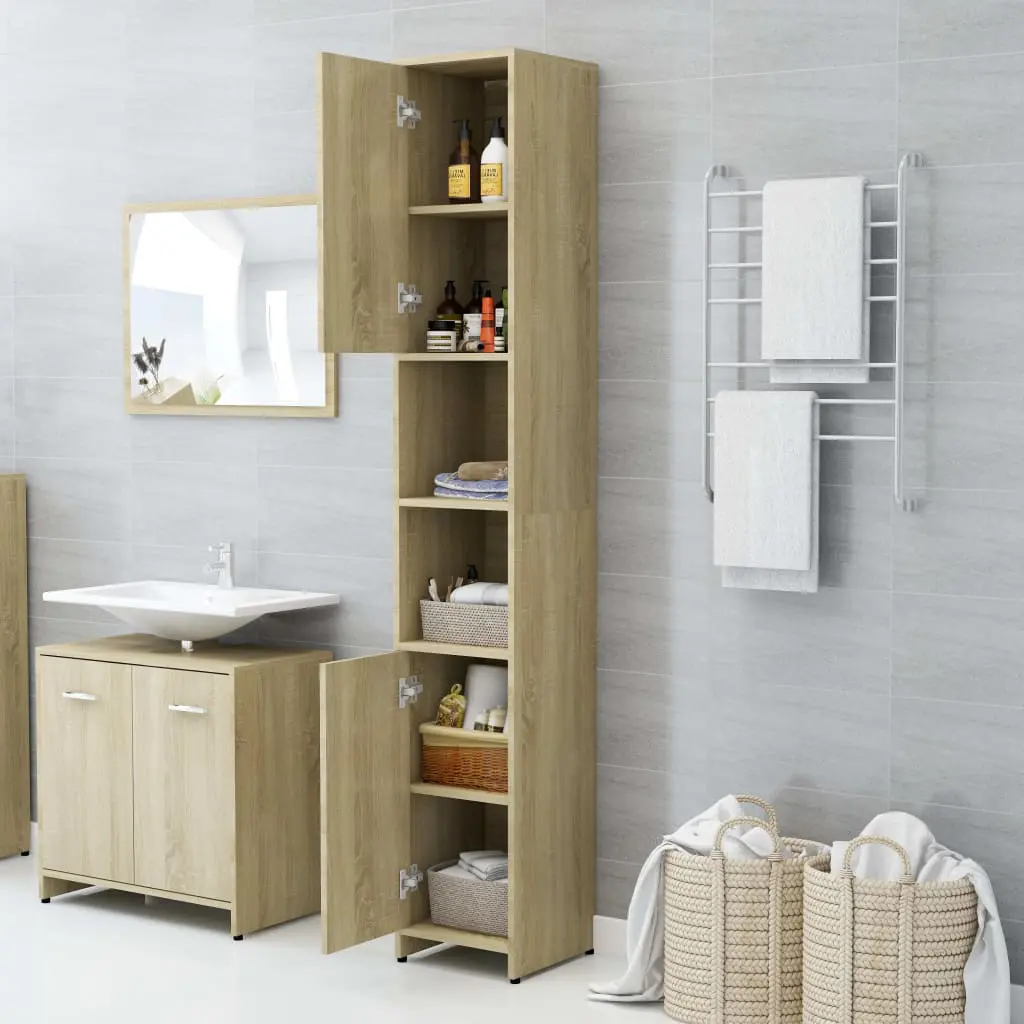 With this bathroom cabinet, you can create additional storage space for your bathroom with a striking, tidy appearance. The clean lines and sleek design blend into your bathroom perfectly. This chic cabinet is made of board, making it sturdy and stable. The laundry room rack has 6 compartments and 2 doors, offering various storage options and extra space to store items in your bathroom. There is a handle on each door for better opening and closing. The cupboard is easy to clean with a damp cloth.