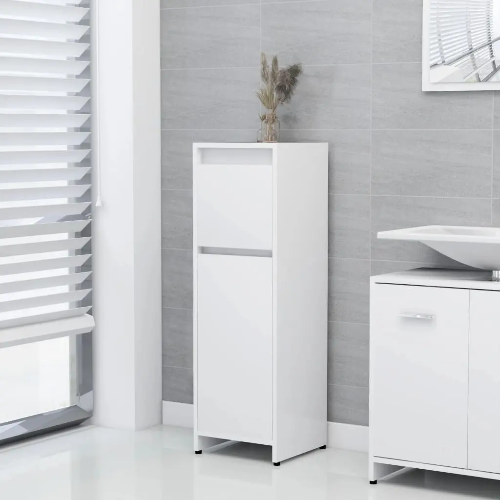 With this bathroom cabinet, you can create additional storage space for your bathroom with a striking, tidy appearance. The clean lines and sleek design blend into your bathroom perfectly. This chic cabinet is made of board, making it sturdy and stable. The laundry room rack has 2 compartments, 1 drawer and 1 door, offering various storage options and extra space to store items in your bathroom. The cupboard is easy to clean with a damp cloth.