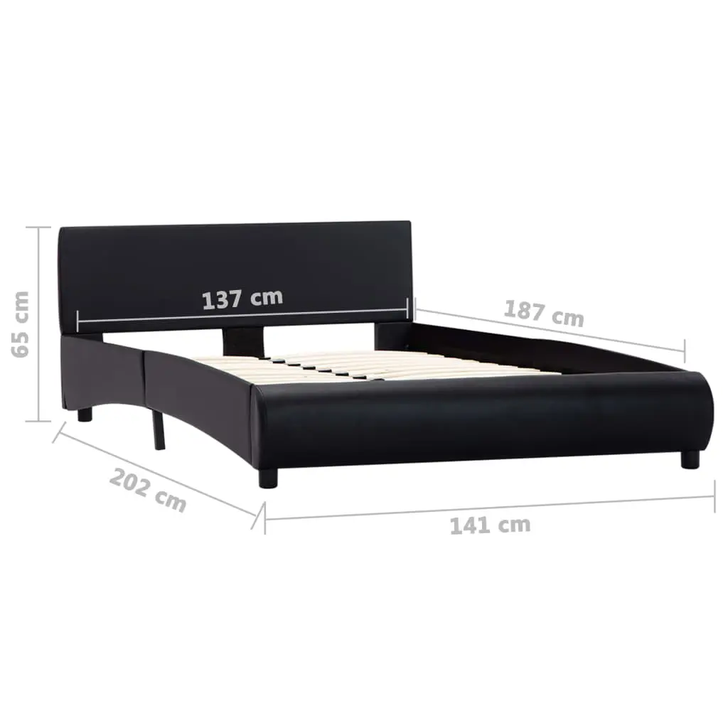 Instantly add an impressive modern taste to your bedroom with our faux leather bed frame! Distinguished by a simple yet timeless design, the bed frame adds a touch of elegant charm to your bedroom decor. The powder-coated steel frame and wooden slats add to the bed’s sturdiness and durability. Upholstered in durable and easy-to-clean faux leather, the bed frame exudes an inviting look. The upholstered bed frame is suitable for a mattress of 137 x 187 cm. Please note that delivery includes a bed frame only, a mattress is not included. The bed frame is easy to assemble. You can check our shop for the matching mattresses.