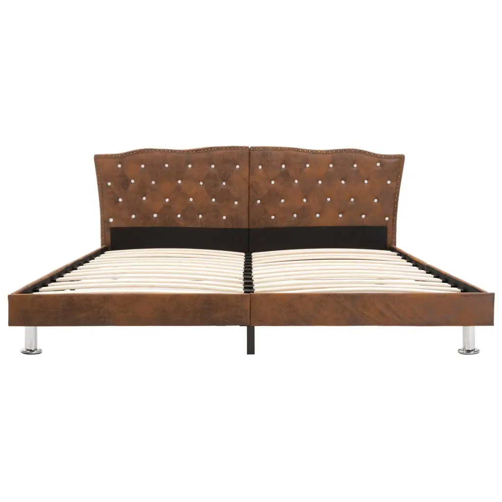 This classic bed frame will become the focal point of your bedroom. Distinguished by an understated yet elegant design, this bed frame adds a touch of elegant charm to your bedroom decor. Made of wood and steel, this bed frame is exceedingly sturdy and durable. The steel legs add extra durability to the bed. Additionally, upholstered in durable fabric, the bed exudes an inviting look, and it is easy to clean. This bed frame is suitable for a mattress of 153 x 203 cm. Please note that delivery includes a bed frame only; a mattress is not included. The bed is easy to assemble.
