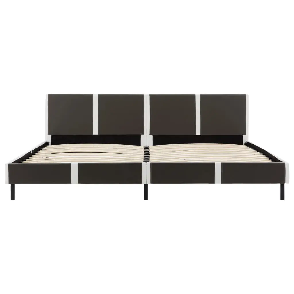This classic bed frame will become the focal point of your bedroom. Distinguished by an understated yet elegant design, this bed frame adds a touch of elegant charm to your bedroom decor. Made of iron and plywood, this bed frame is exceedingly sturdy and durable. The powder-coated steel legs add extra durability to the bed. Additionally, upholstered in faux leather, the bed exudes an inviting look, and it is easy to clean. This bed frame is suitable for a mattress of 153 x 203 cm. Please note that delivery includes a bed frame only; a mattress is not included. The bed is easy to assemble.