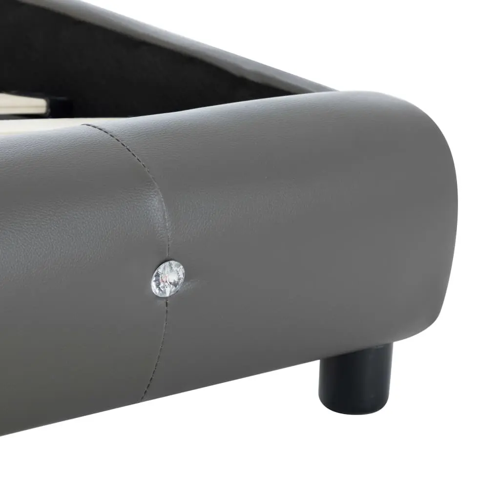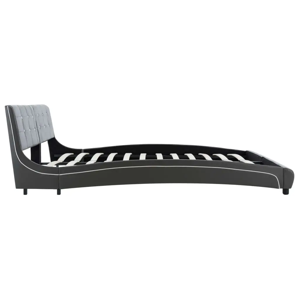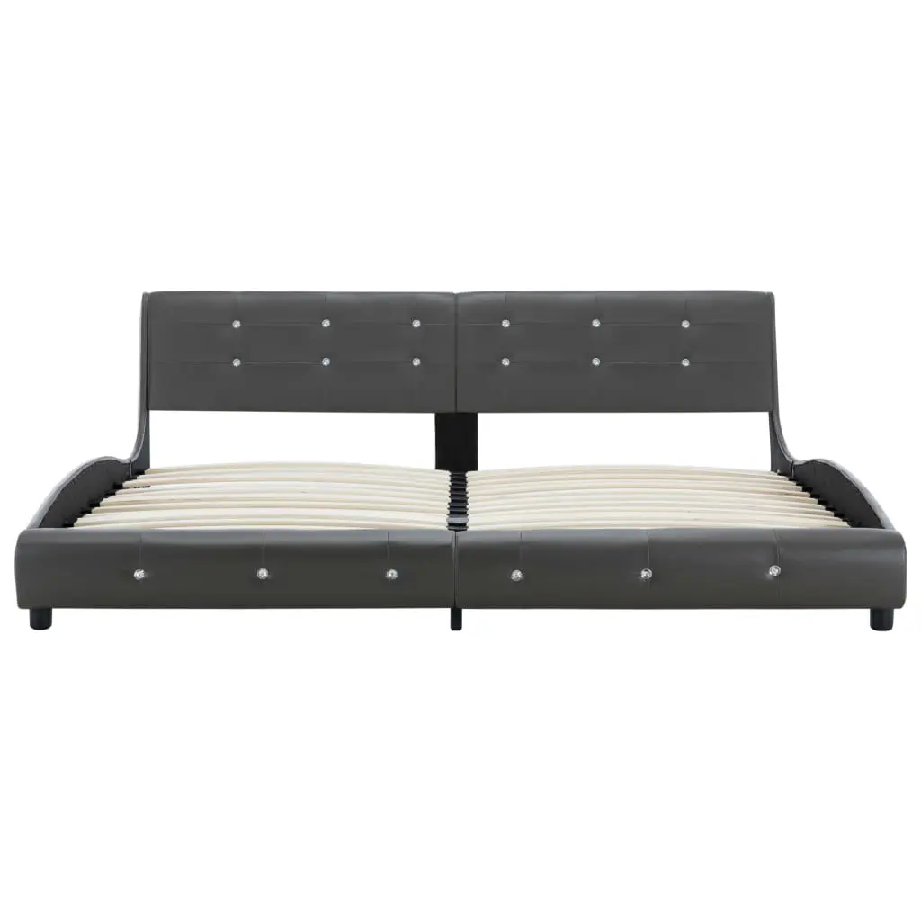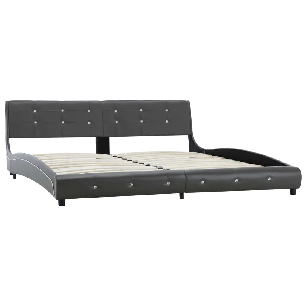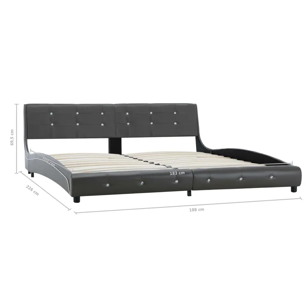 This classic bed frame will become the focal point of your bedroom. Distinguished by an understated yet elegant design, this bed frame adds a touch of elegant charm to your bedroom decor. Made of iron and wood, this bed frame is exceedingly sturdy and durable. The powder-coated steel legs add extra durability to the bed. Additionally, upholstered in durable faux leather, the bed exudes an inviting look. This bed frame is suitable for a mattress of 183 x 203 cm. Please note that delivery includes a bed frame only; a mattress is not included. The bed is easy to assemble.