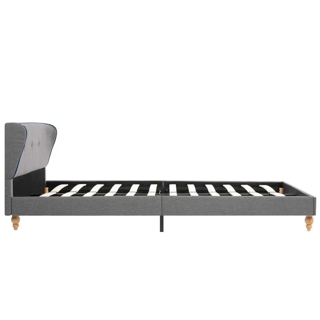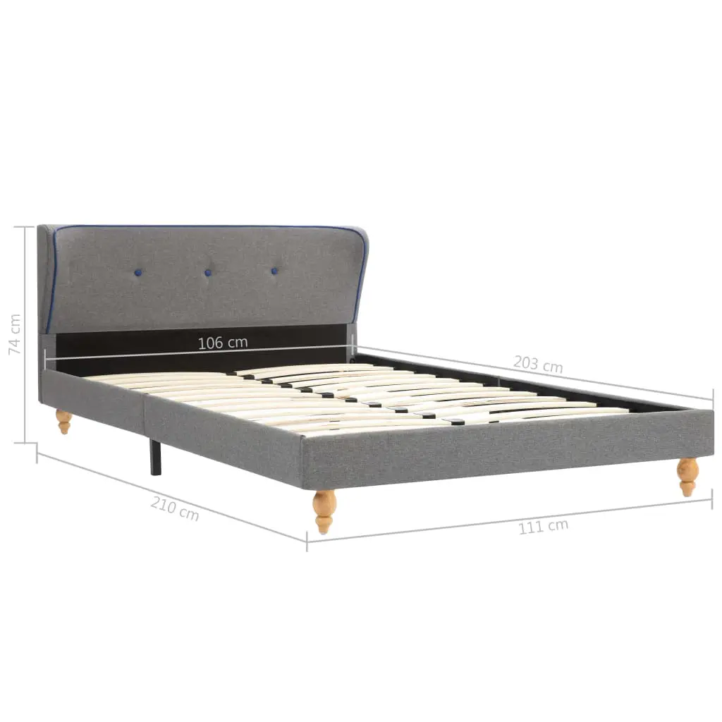 This classic bed frame will become the focal point of your bedroom. Distinguished by an understated yet elegant design, this bed frame adds a touch of elegant charm to your bedroom decor. Made of wood and steel, this bed frame is exceedingly sturdy and durable. The solid rubber wood legs add extra durability to the bed. Additionally, upholstered in durable fabric, the bed exudes an inviting look, and it is easy to clean. This bed frame is suitable for a mattress of 106 x 203 cm. Please note that delivery includes a bed frame only; a mattress is not included. The bed is easy to assemble.