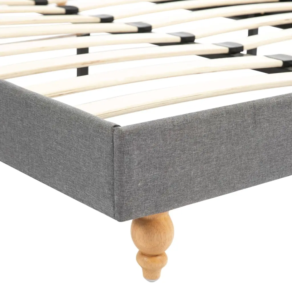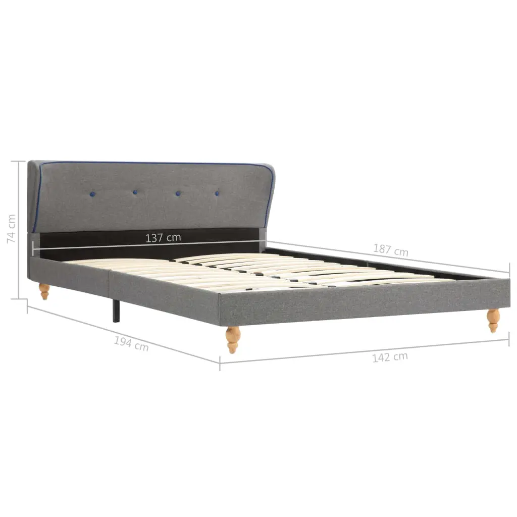 This classic bed frame will become the focal point of your bedroom. Distinguished by an understated yet elegant design, this bed frame adds a touch of elegant charm to your bedroom decor. Made of wood and steel, this bed frame is exceedingly sturdy and durable. The solid rubber wood legs add extra durability to the bed. Additionally, upholstered in durable fabric, the bed exudes an inviting look, and it is easy to clean. This bed frame is suitable for a mattress of 137 x 187 cm. Please note that delivery includes a bed frame only; a mattress is not included. The bed is easy to assemble.