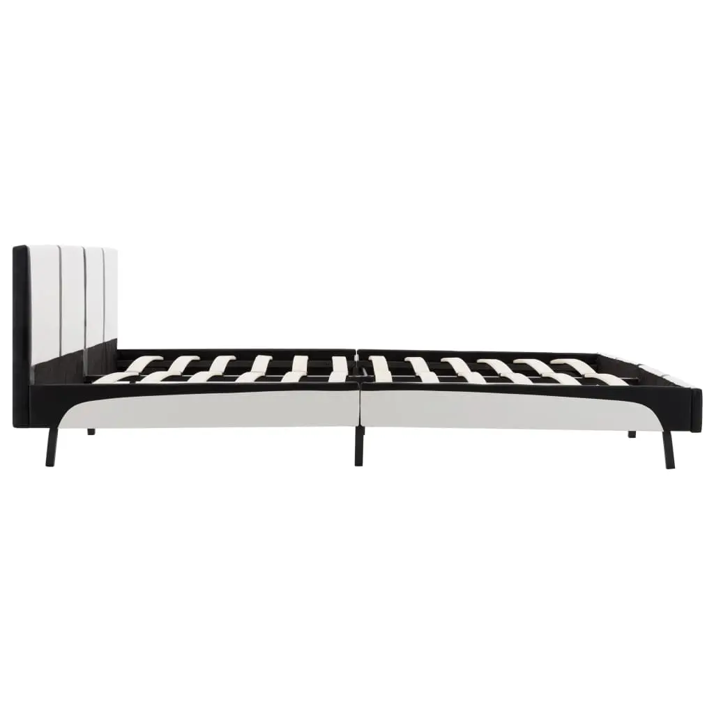 This classic bed frame will become the focal point of your bedroom. Distinguished by an understated yet elegant design, this bed frame adds a touch of elegant charm to your bedroom decor. Made of iron and plywood, this bed frame is exceedingly sturdy and durable. The powder-coated steel legs add extra durability to the bed. Additionally, upholstered in faux leather, the bed exudes an inviting look, and it is easy to clean. This bed frame is suitable for a mattress of 153 x 203 cm. Please note that delivery includes a bed frame only; a mattress is not included. The bed is easy to assemble.