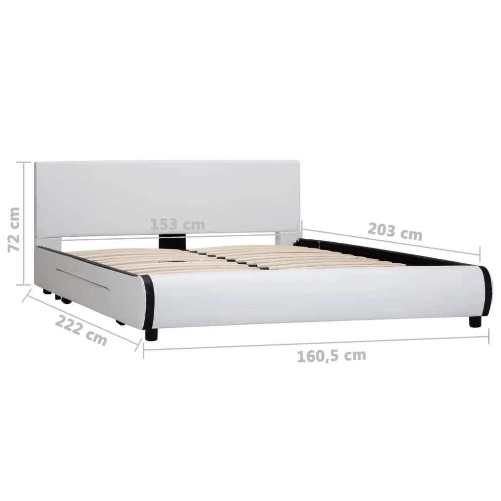 This solidly constructed bed frame has a sleek, modern design and will add a contemporary touch to your bedroom. Upholstered in faux leather with comfortable padding, this bed frame is designed to infuse your bedroom decor with comfort as well as style. This bed frame is easy to clean and water-resistant. Its foam padding provides a very comfortable back support for you to lean back on. The built-in drawers provide ample space for keeping smaller items organised and within reach. This bed farme is suitable for a mattress of 153 x 203 cm. Please note only the bed frame is included in delivery.