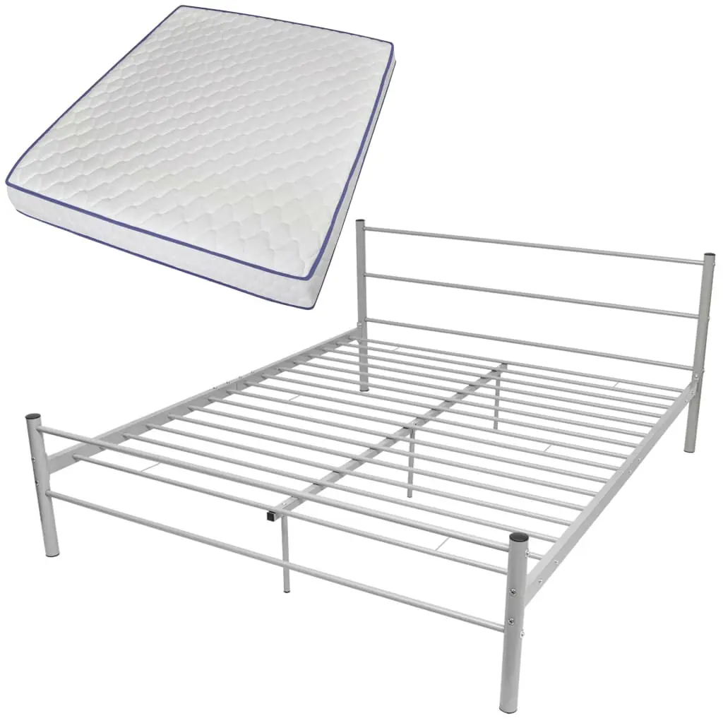This solidly constructed metal queen bed has a simple, modern design and will add a contemporary touch to your bedroom. Made of high-quality metal, the bed frame is tough and robust. The powder-coated frame is scratch and impact resistant. The metal slats are slightly flexible and form a comfortable bed base. As to the cosy mattress, approximately 17 cm thick, is extra-soft and comfortable. Thanks to the memory foam, the mattress has an incomparable viscosity and density, and will quickly return to its original shape after use.The mattress automatically distributes your weight and reduces stress on your body’s pressure points. It helps to soothe the pain in the neck, back and joints. The mattress is made up of 5 layers, from top to bottom: a polyester fabric top cover, 2 cm 40D memory foam, 14 cm 22D foam, 1 cm 20D foam and a polyester fabric bottom cover. The mattress is compressed for delivery. Please note that for hygienic reasons, the mattress cannot be returned if the packaging has been opened or removed.