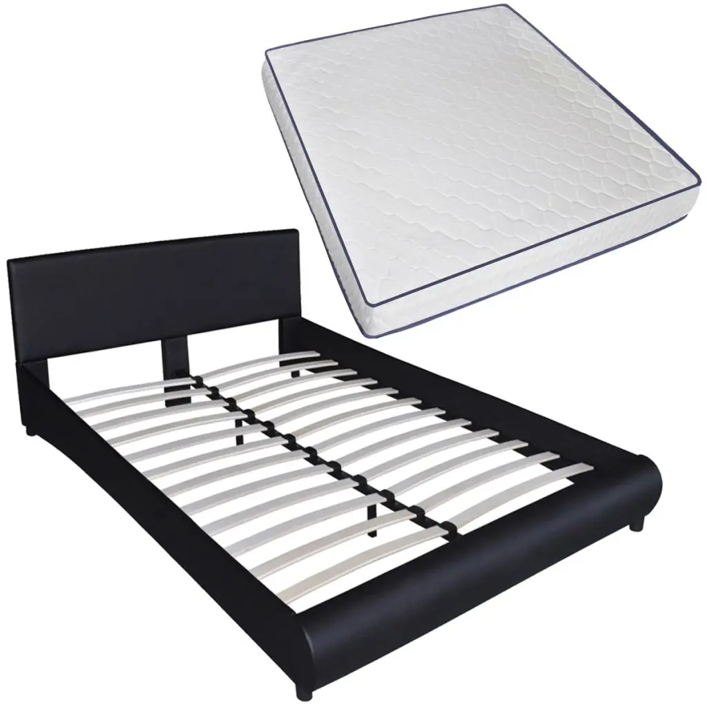 This solidly constructed artificial leather bed with a healthy mattress has a clean, sleek design and will add a contemporary touch to your bedroom. Upholstered in artificial leather with comfortable padding, this bed is designed to infuse your bedroom with comfort as well as style. Thanks to its sturdy wooden slats for extra support, this bed frame is very durable. This suitable mattress, approximately 17 cm thick, is extra-soft and comfortable. The mattress is made up of 5 layers, from top to bottom: a polyester fabric top cover, 2 cm 40 D memory foam, 14 cm 22 D foam, 1 cm 20 D foam and a polyester fabric bottom cover. Thanks to its memory foam, the mattress has an incomparable viscosity and density, and will quickly return to its original shape after use. The mattress automatically distributes your weight and reduces stress on your body’s pressure points. It helps to soothe the pain in the neck, back and joints. Assemble is easy. Please note that for hygienic reasons, the mattress cannot be returned if the packaging has been opened or removed.
