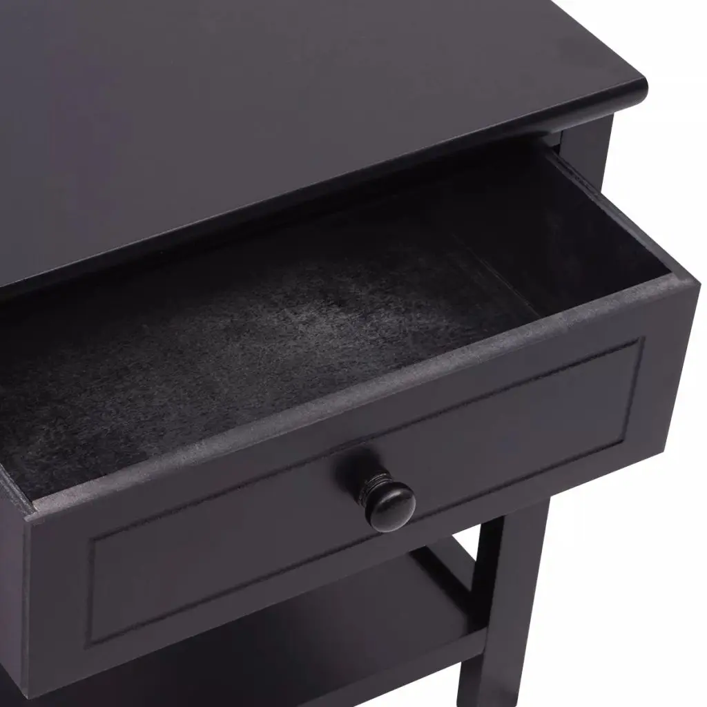 This wooden bedside cabinet, with a simple yet stylish design, will make a great addition to your decor. It can also be used as a telephone stand, side cabinet, small cabinet, drawer cabinet, storage cabinet, nightstand, night cabinet, bedroom cabinet, end table, end cabinet, etc. This compact cabinet has a smoothly running drawer, which provides ample space for keeping smaller items organised and within reach. The shelf beneath the drawer provides additional storage space. Made of high-quality materials, the cabinet is durable and easy to clean. Assembly is very easy.