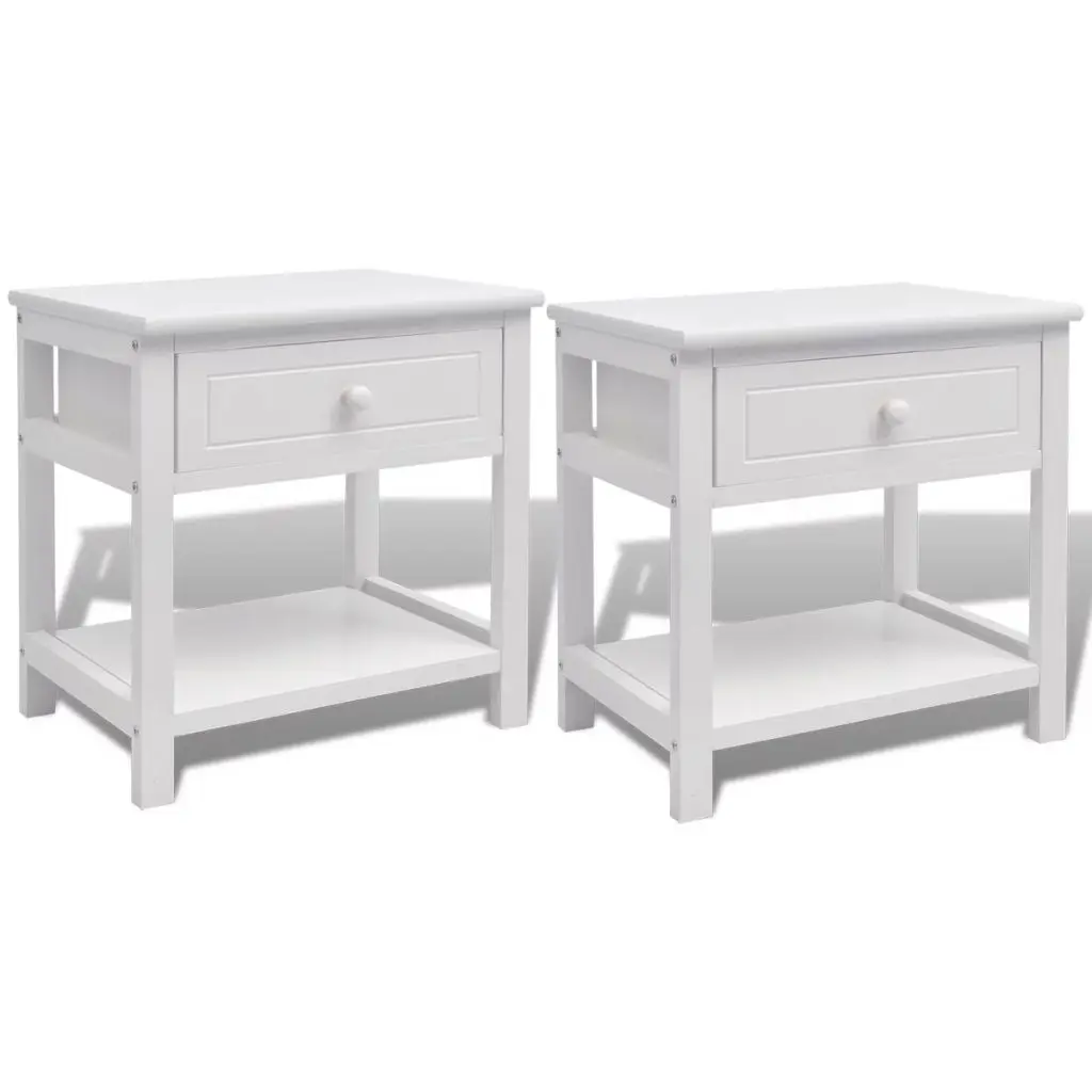 These wooden bedside cabinets, with a simple yet stylish design, will make a great addition to your decor. They can also be used as telephone stands, side cabinets, small cabinets, drawer cabinets, storage cabinets, nightstands, night cabinets, bedroom cabinets, end tables, end cabinets, etc. These compact cabinets have a smoothly running drawer, which provides ample space for keeping smaller items organised and within reach. The shelf beneath the drawer provides additional storage space. Made of high-quality materials, the cabinets are durable and easy to clean. Delivery includes 2 bedside cabinets. Assembly is very easy.