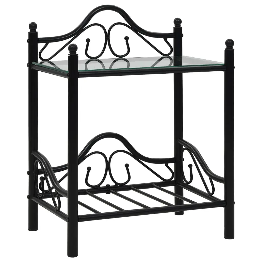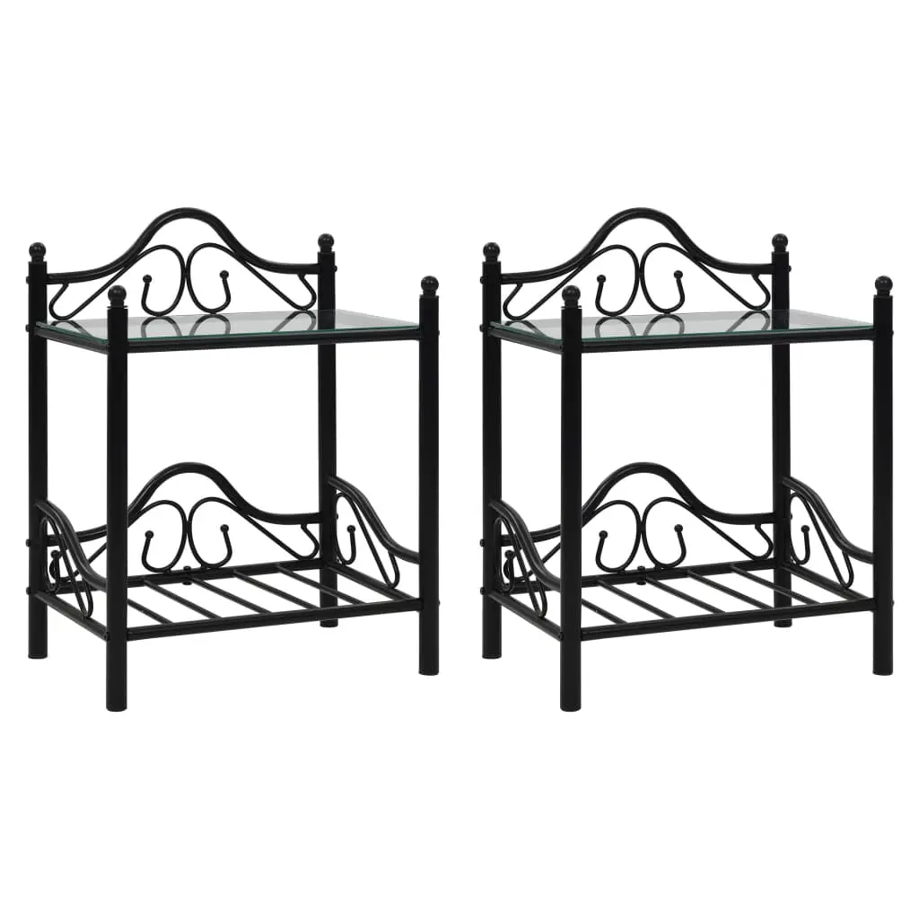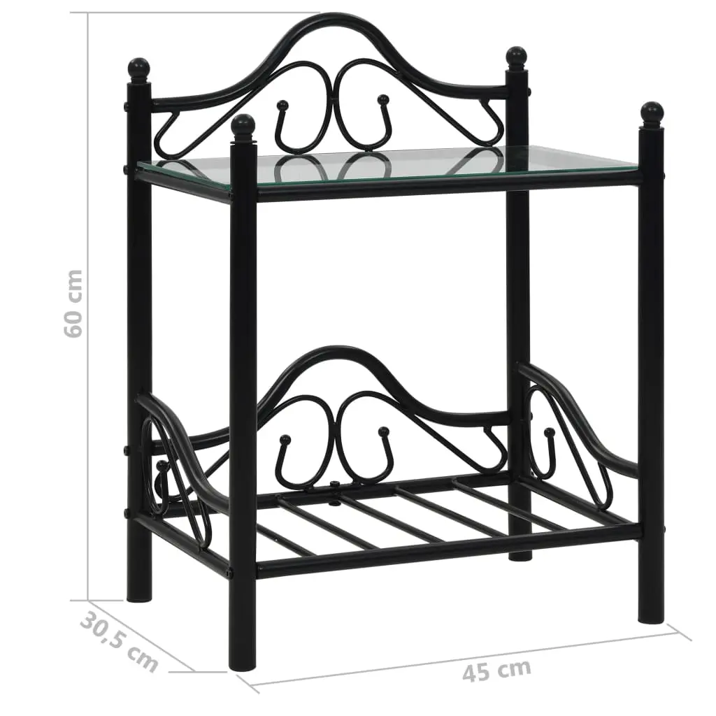 The bedside table set will make a timeless addition to your interior. This nightstand set comprises of sturdy steel frames and tempered glass panels and is stable and durable. Each table has 2 shelves which are ideal for placing various small items. The curved steel structures contribute to the bedside table’s elegant style. The set is easy to assemble. Delivery includes 2 bedside tables.