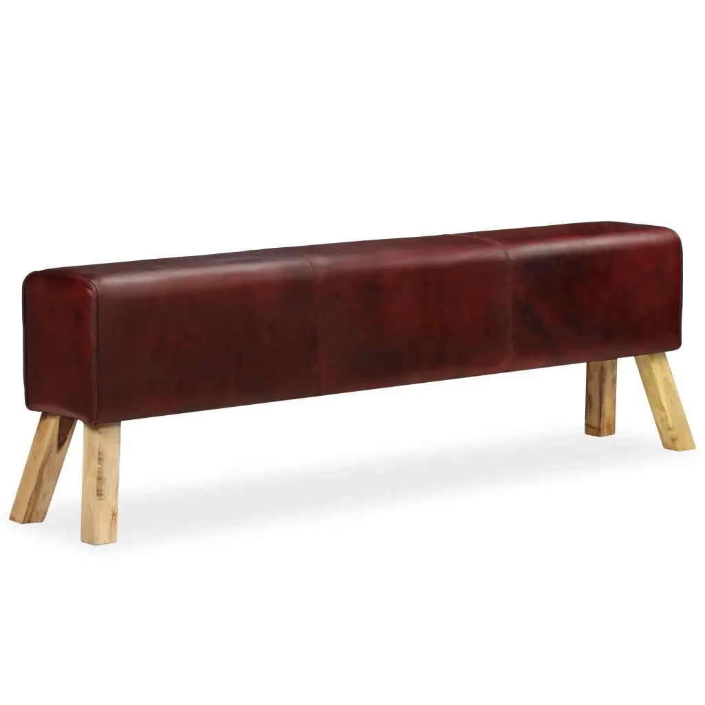 This comfortable bench is upholstered in genuine goat leather and will make a perfect addition to any interior with its iconic design. It will look great not only in restaurants or bars, but also in your hallway, living room or dining room at home. This bench’s design was inspired by an old-school pommel horse, which gives a vintage look. The seat is fully upholstered in goat leather, which is comfortable, durable, and easy to clean. The polished, painted and lacquered wooden legs are sturdy and add to the beautiful, vintage-style design. Assembly is easy.