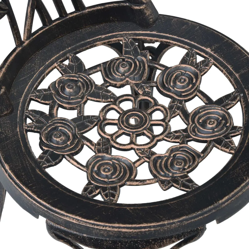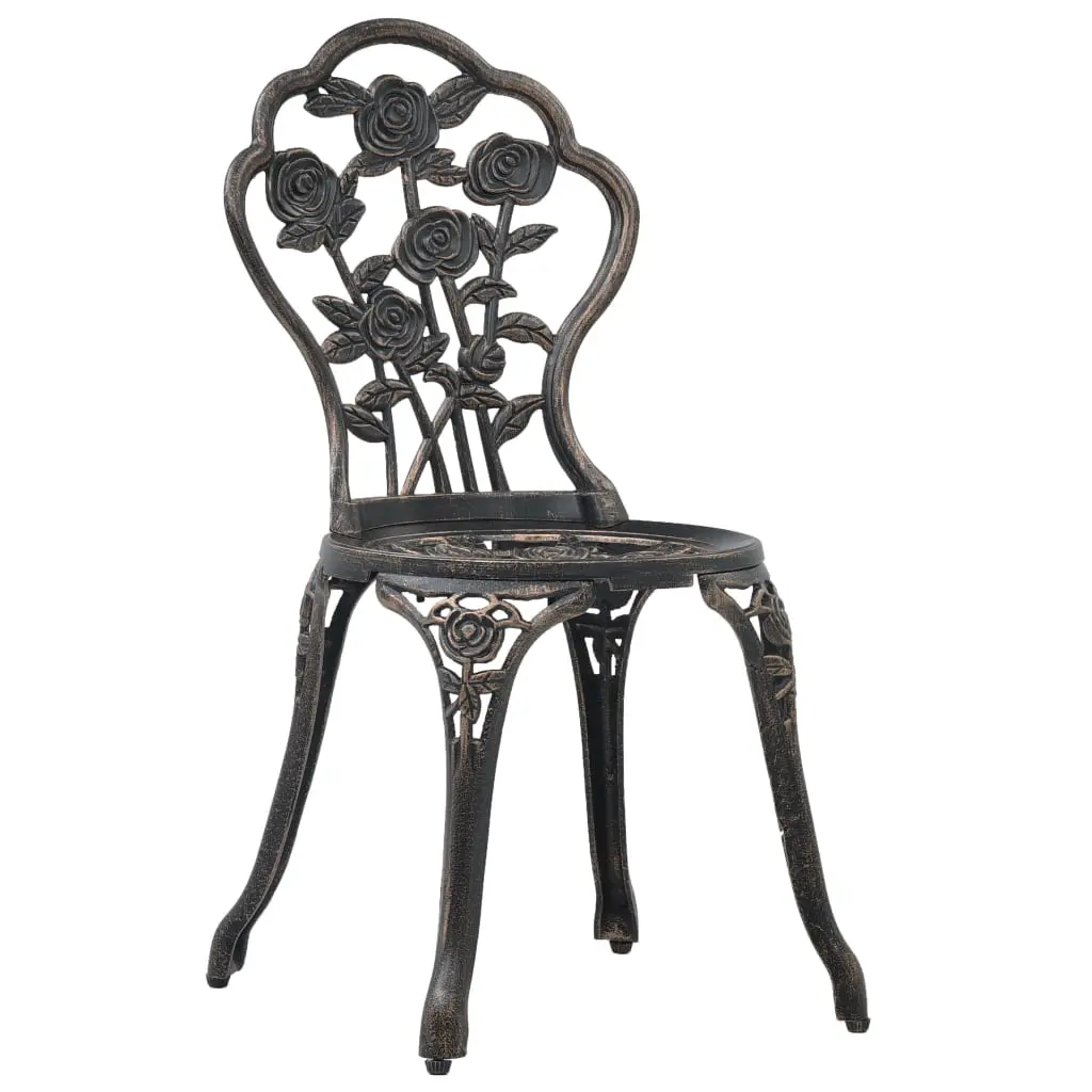 This set of bistro chairs will make a decorative addition to your garden, patio, or balcony with their ornate floral details. It will be a pleasure to have a cuppa with your friends sitting on these chairs! The bistro set is made of cast aluminium, which is weather-resistant and highly durable. The cast iron legs add to the sturdiness of the set. The detailed floral pattern will add a romantic touch to any garden, patio or conservatory. Delivery includes 2 bistro chairs.