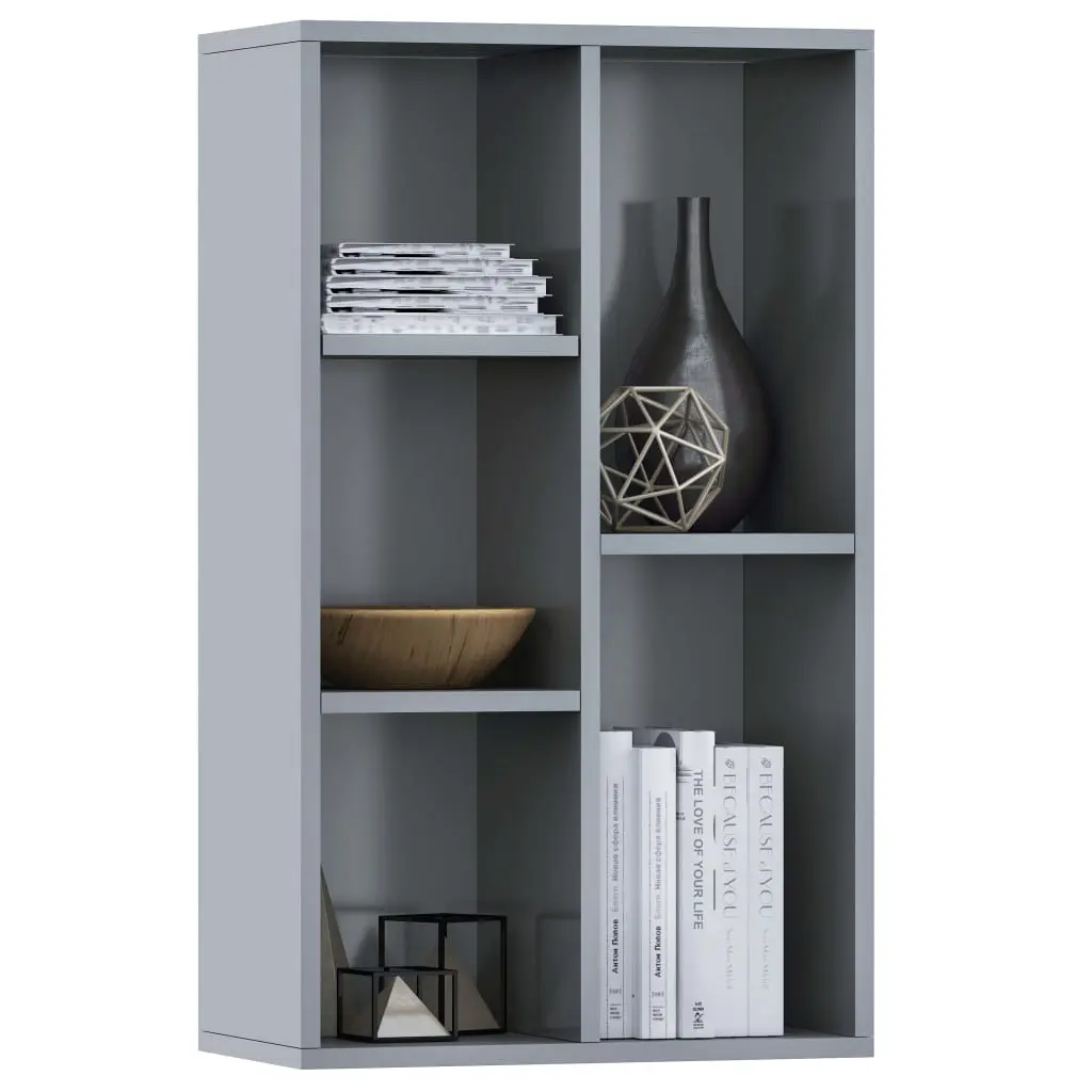 Featuring a sleek and classic design, this book cabinet will make a decorative as well as practical addition to your decor. The cabinet is made of chipboard, which ensures it sturdiness, durability and long service life. Designed with 5 compartments, the bookshelf offers ample storage space for keeping your magazines, books, DVDs and multimedia devices well organised and within reach. Additionally, as a versatile shelf, the book rack can be placed horizontally as a sideboard as well, making it a perfect choice for your living space. The book rack is easy to clean with damp cloth. This book cabinet is easy to assemble with included mounting materials.