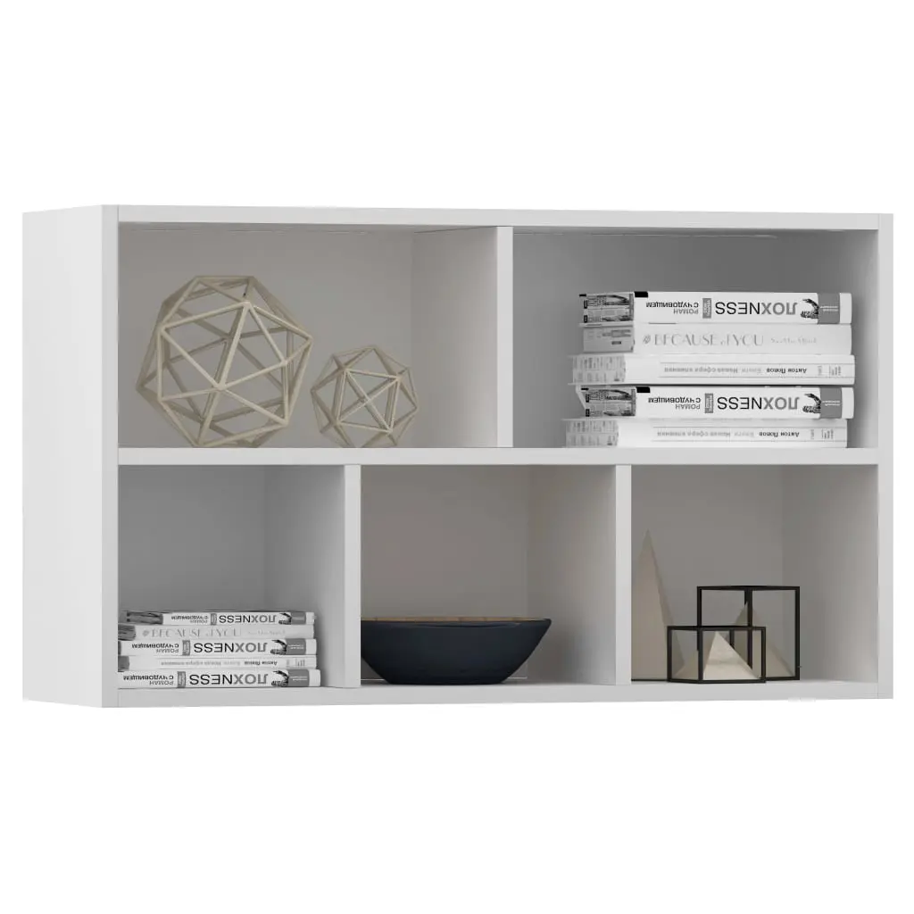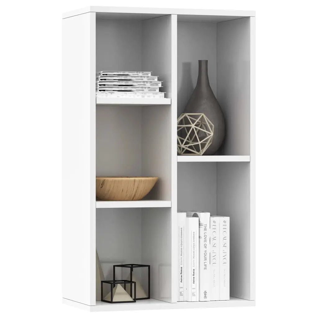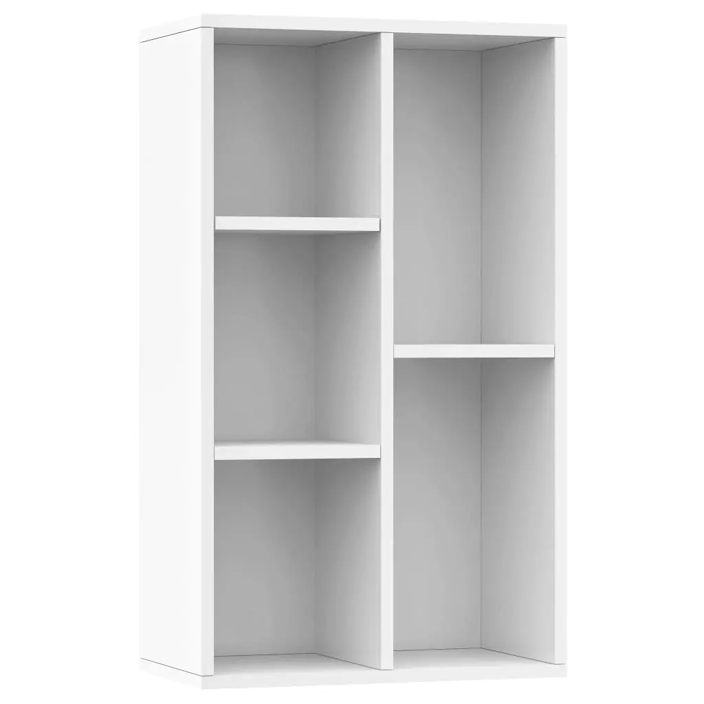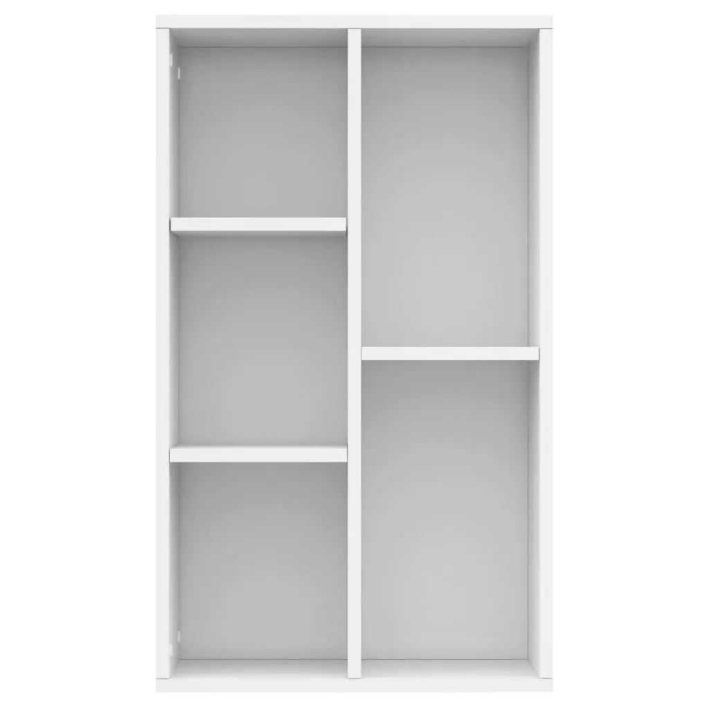 Featuring a sleek and classic design, this book cabinet will make a decorative as well as practical addition to your decor. The cabinet is made of chipboard, which ensures it sturdiness, durability and long service life. Designed with 5 compartments, the bookshelf offers ample storage space for keeping your magazines, books, DVDs and multimedia devices well organised and within reach. Additionally, as a versatile shelf, the book rack can be placed horizontally as a sideboard as well, making it a perfect choice for your living space. The book rack is easy to clean with damp cloth. This book cabinet is easy to assemble with included mounting materials.