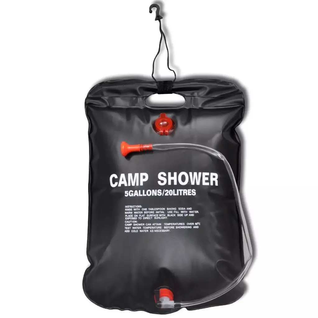 This camp shower gives your a soothing shower after a long journey when you are camping or hiking. Made from high-quality PVC material, the solar shower is weather resistant and sturdy in its structure. Equipped with a valve, it is very convenient to control water yield. You can fill the reservoir with water and hang it in a tree, a pipe or branches, etc. The handle of the bag is reinforced by the hard plastic tube, so you won’t have to worry that it will drop suddenly. During a sunny day, the black reservoir allows a quick absorption of solar energy and heat up the water. With a valve and a shower head, you are now able to enjoy a comfortable outdoor bath. The camp shower can be easily folded away for easy storage and carrying. Delivery includes two camp shower bags.