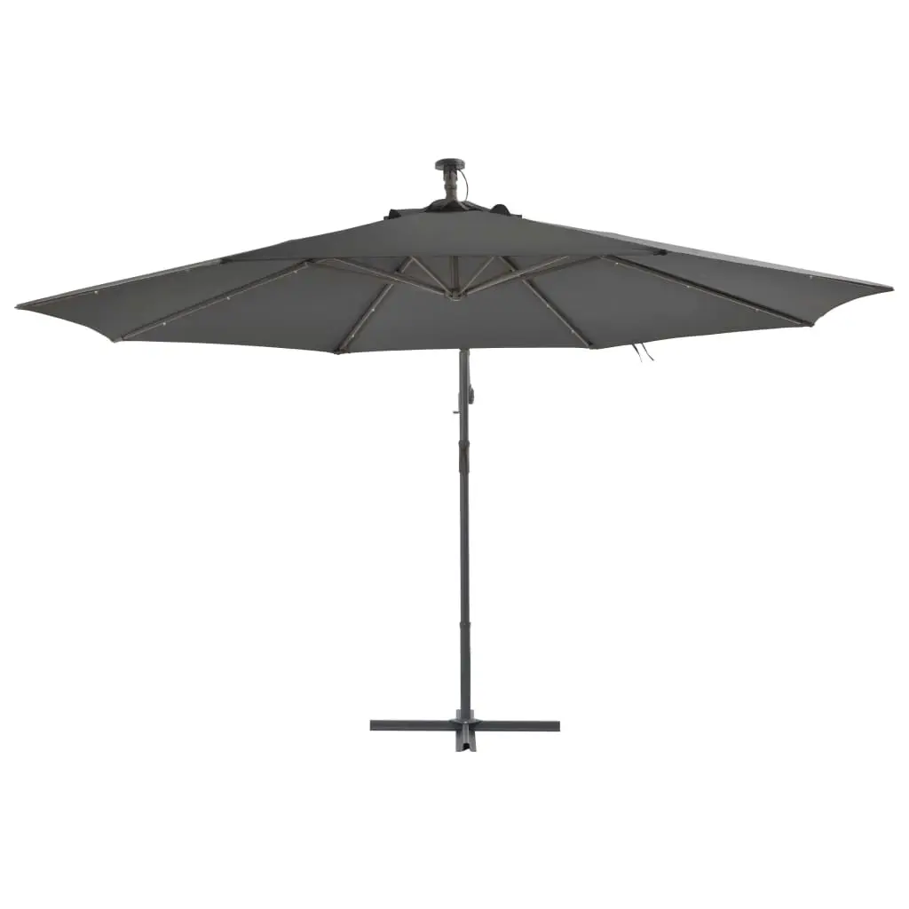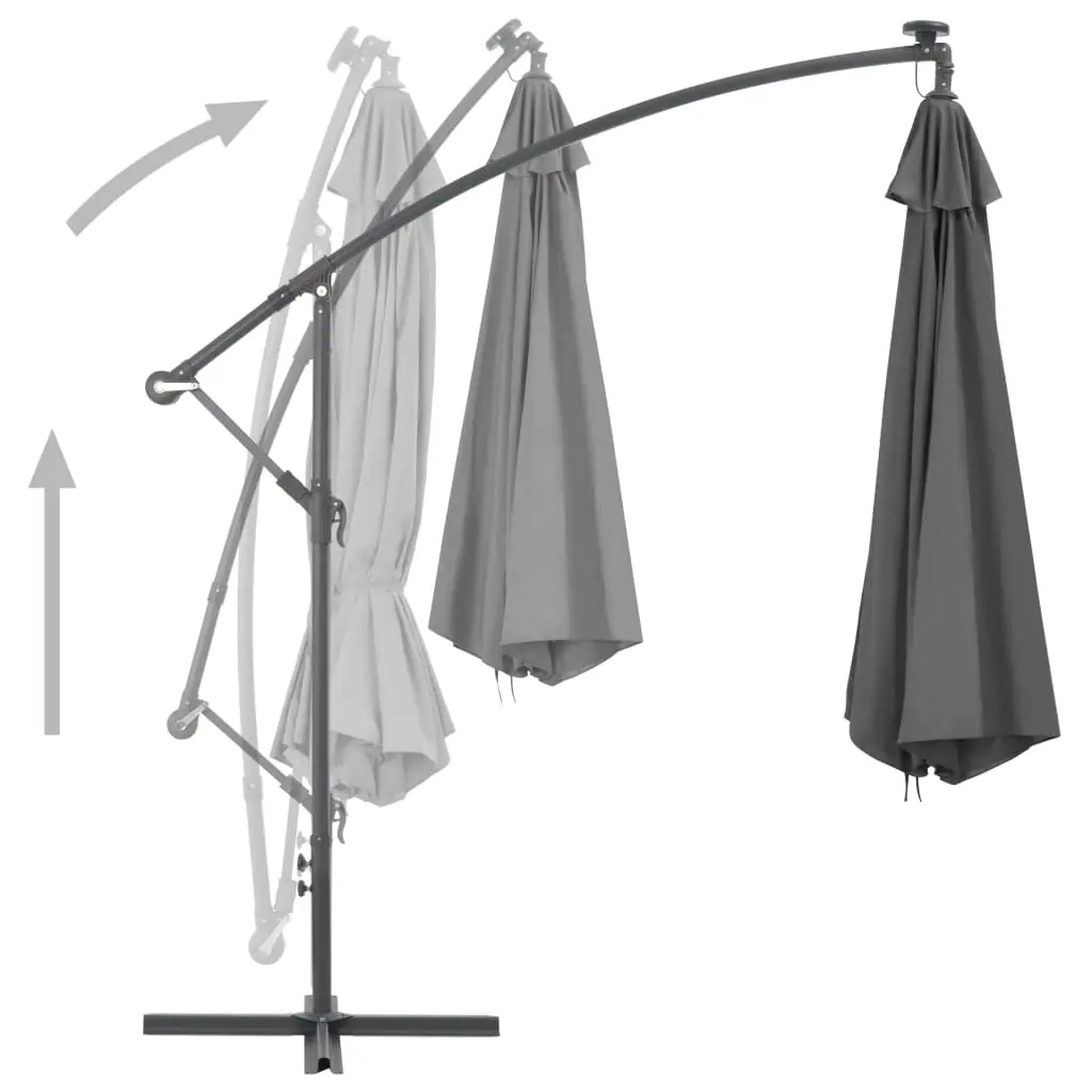 This elegant hanging parasol with LED lights is perfect to create some shade and protect you from the sun’s harmful UV rays. Made of UV protective and anti-fade polyester, the parasol cover provides you with optimum protection against the sun and is easy to clean. It features 24 solar-powered LEDs to automatically illuminate your outdoor living space and create a cosy and romantic ambience when the sun goes down. It also comes with a sturdy cross base to add stability. The exclusive design of this parasol allows you to tilt the parasol to block the sun as it heads down towards the horizon. The strong metal pole, along with the 8 durable ribs, makes the parasol very stable and durable. Our garden umbrella can be easily opened and closed thanks to the crank mechanism. The item is easy to assemble. Please note that we recommend treating the umbrella fabric with a waterproofing spray if it is subjected to heavy rainfall.
