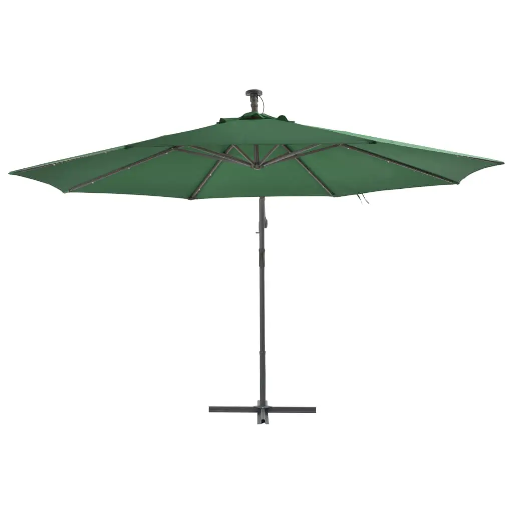 This elegant hanging parasol with LED lights is perfect to create some shade and protect you from the sun’s harmful UV rays. Made of UV protective and anti-fade polyester, the parasol cover provides you with optimum protection against the sun and is easy to clean. It features 24 solar-powered LEDs to automatically illuminate your outdoor living space and create a cosy and romantic ambience when the sun goes down. It also comes with a sturdy cross base to add stability. The exclusive design of this parasol allows you to tilt the parasol to block the sun as it heads down towards the horizon. The strong metal pole, along with the 8 durable ribs, makes the parasol very stable and durable. Our garden umbrella can be easily opened and closed thanks to the crank mechanism. The item is easy to assemble. Please note that we recommend treating the umbrella fabric with a waterproofing spray if it is subjected to heavy rainfall.
