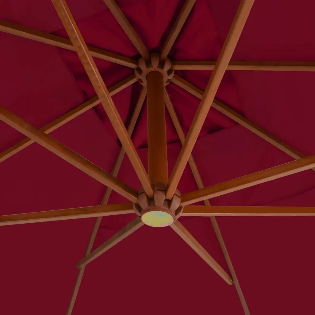 This wooden elegant hanging parasol is perfect to create some shade and protect you from the sun’s harmful UV rays. Made of UV protective and anti-fade polyester, the parasol cover provides you with optimum protection against the sun and is easy to clean. It features a sturdy cross base to add stability. The exclusive design of this parasol allows you to tilt the parasol to block the sun as it heads down towards the horizon. The strong wooden pole, along with the 8 durable ribs, makes the parasol very stable and durable. Our garden umbrella can be easily opened and closed thanks to the crank mechanism. The item is easy to assemble. Please note that we recommend treating the umbrella fabric with a waterproofing spray if it is subjected to heavy rainfall.