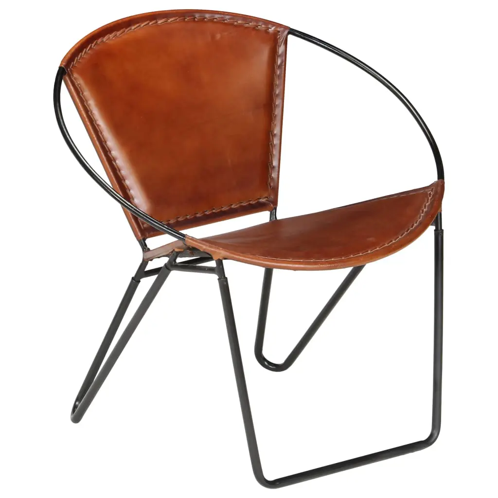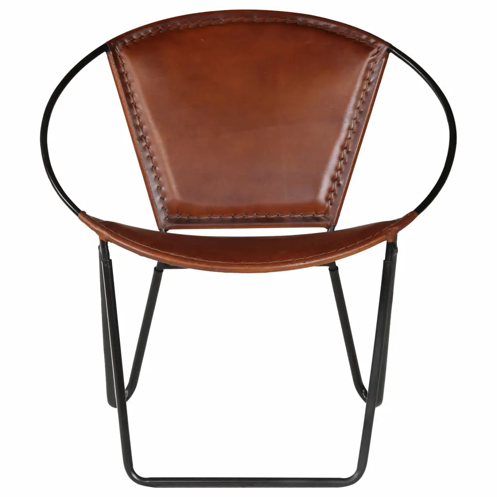 This soft and comfortable genuine leather chair has a classic design that’s all the rage right now. It will look great not only in your living room at home but also in your outdoor living space. The real leather seat and backrest are soft to the touch and very comfortable, while the powder-coated steel frame makes the chair durable. The beautiful lines of the construction add to the relaxing chair’s unique and vintage look. The item is already assembled; no assembly is required. Important note: Leather patterns may vary from piece to piece, making each of our chairs unique; the delivery is random.