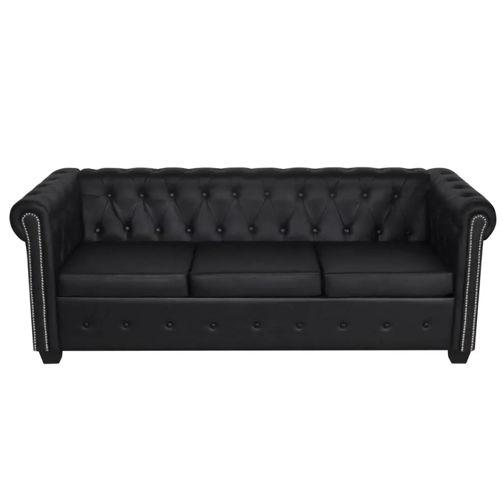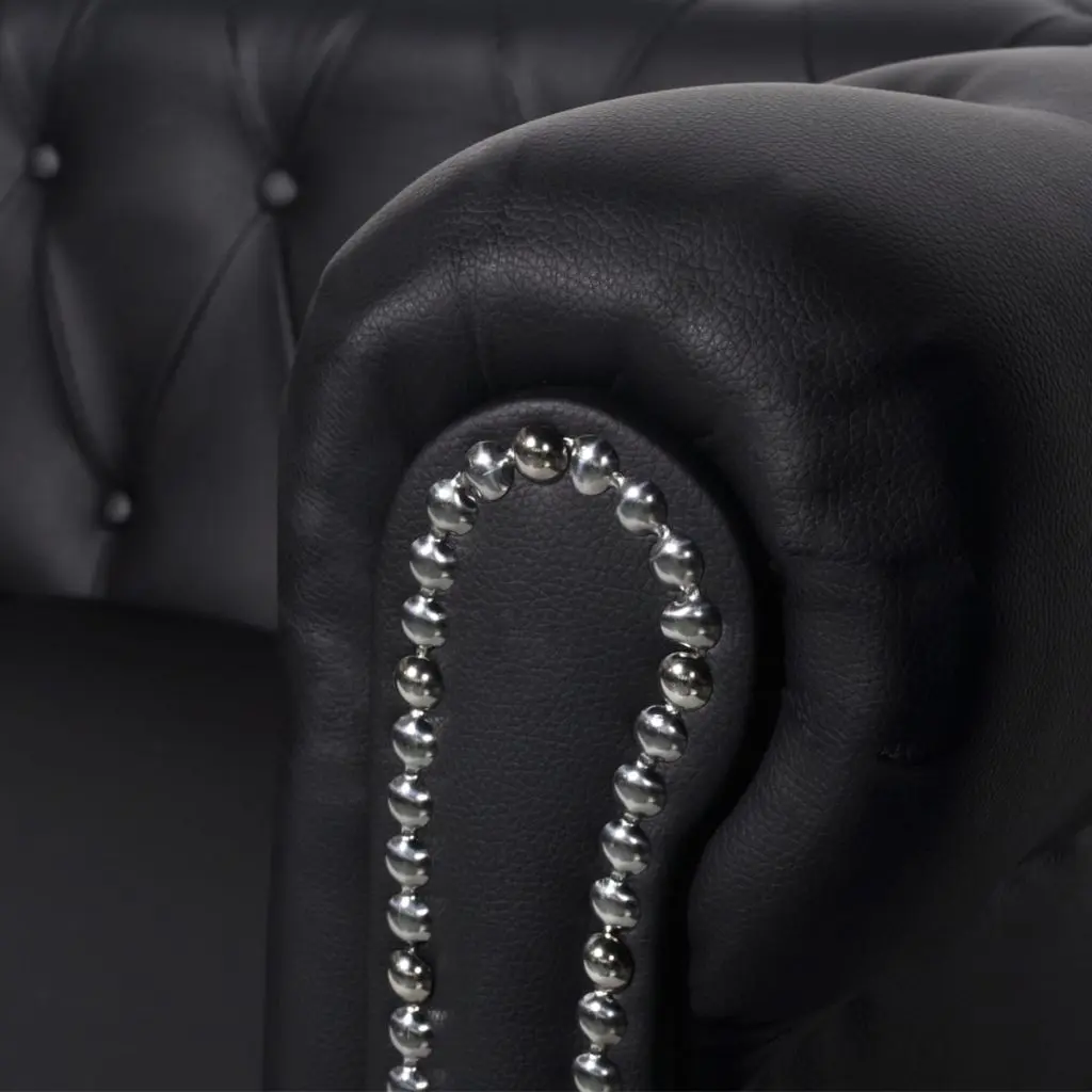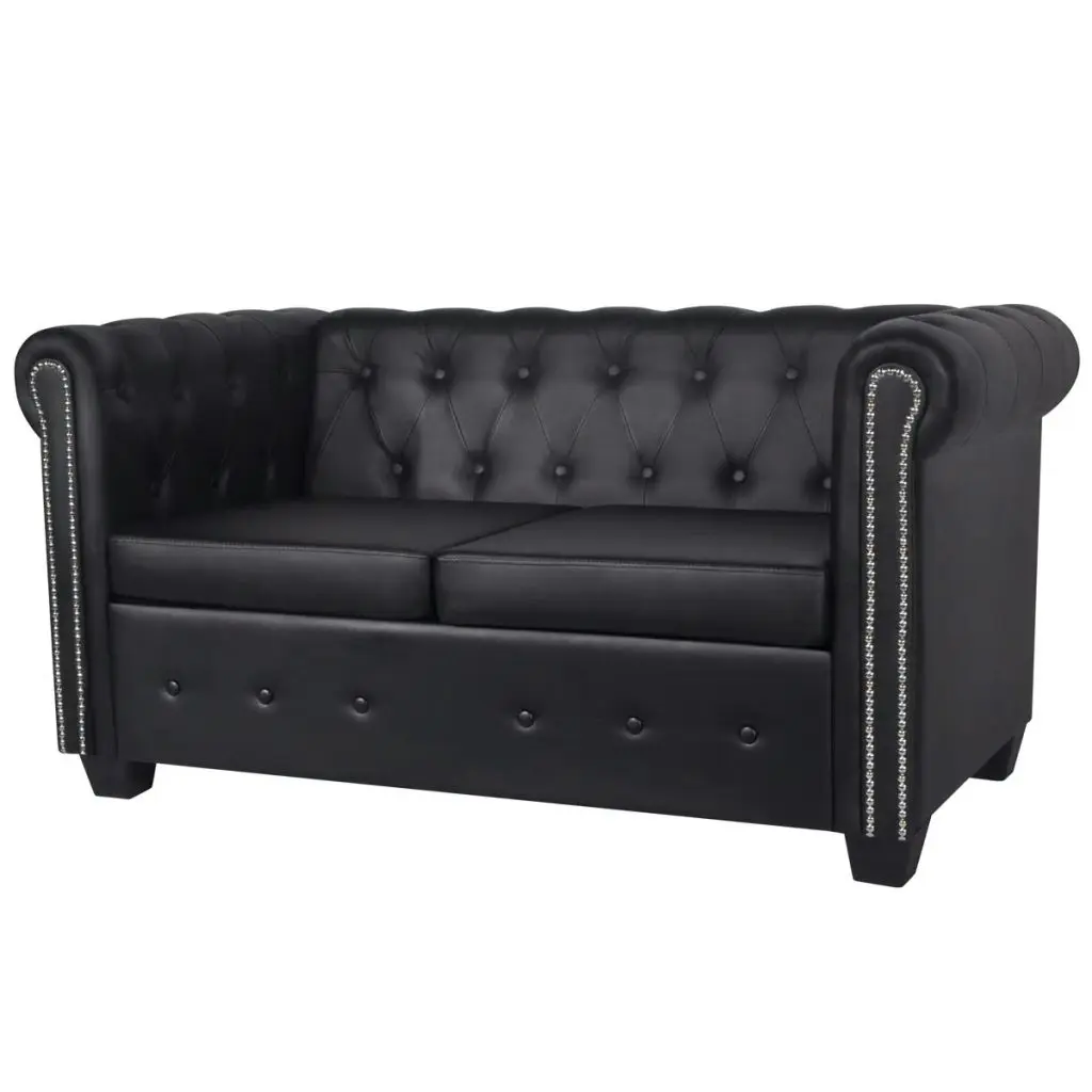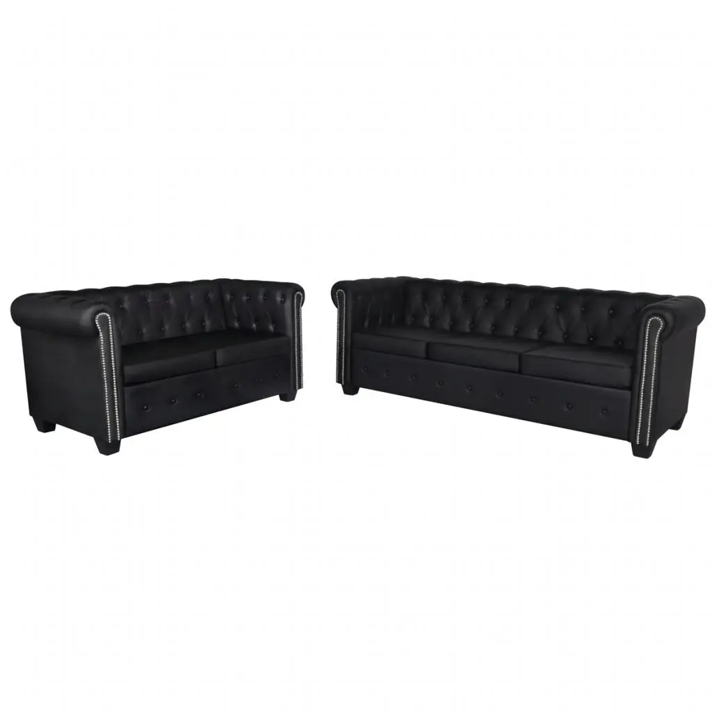 This Chesterfield sofa set, consisting of a 2-seater and a 3-seater, is the perfect blend of comfort and sophistication and will make a great addition to any home or office. This 2-seater and 3-seater sofa set, with its tufted and studded detailing and gracefully curved arms, will add a touch of luxury, class and style to any interior. The thickly padded seat is highly comfortable, while the elegant structure is sturdy and durable. The quality artificial leather upholstery is easy to clean and hardwearing. Delivery includes 1 x 2-seater sofa and 1 x 3-seater sofa.