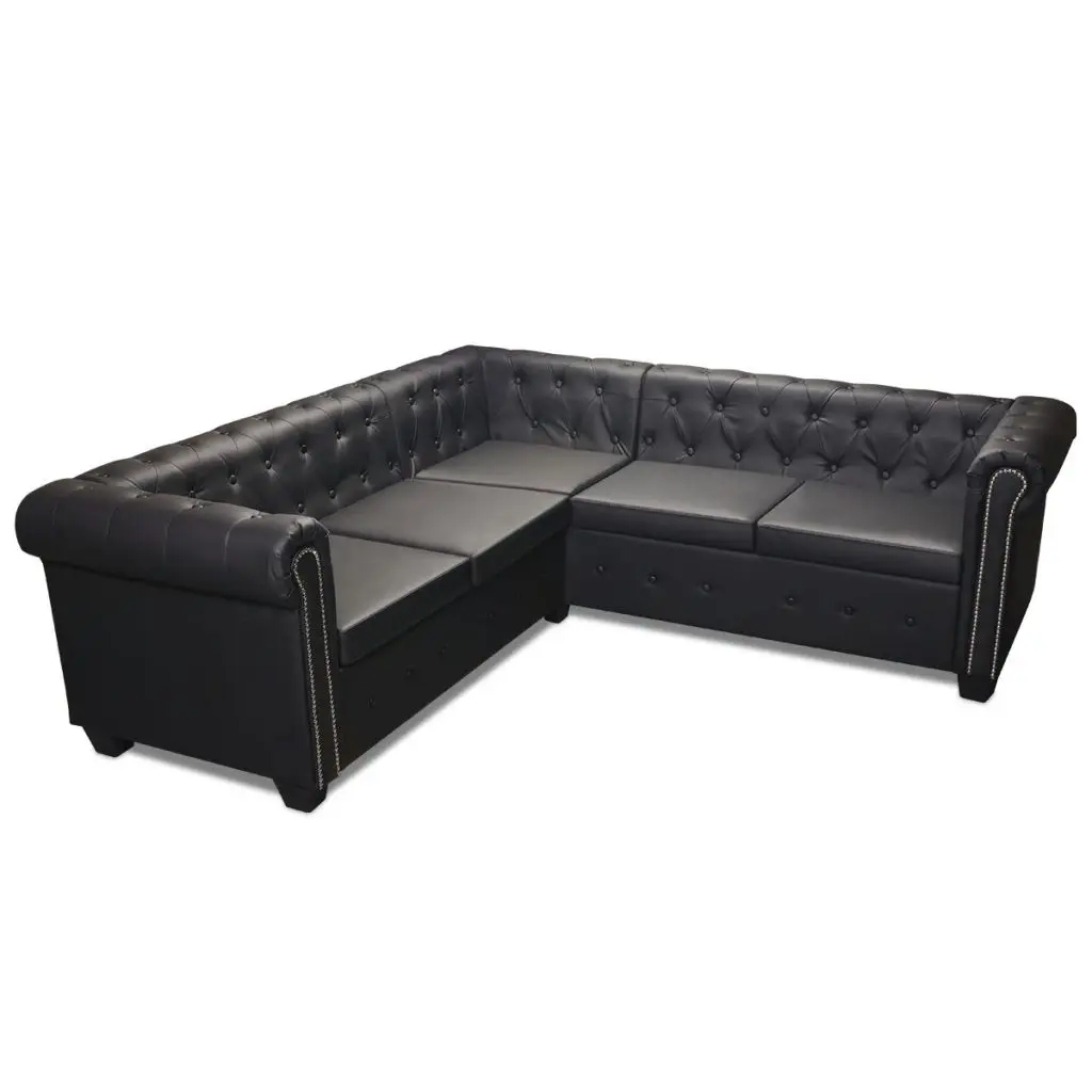 This Chesterfield corner sofa is the perfect blend of comfort and sophistication and will make a great addition to any home or office. This 5-seater sofa, with its tufted and studded detailing and gracefully curved arms, will add a touch of luxury, class and style to any interior. The thickly padded seat is highly comfortable, while the elegant structure is sturdy and durable. The quality artificial leather upholstery is easy to clean and hard-wearing. Assembly is very easy.