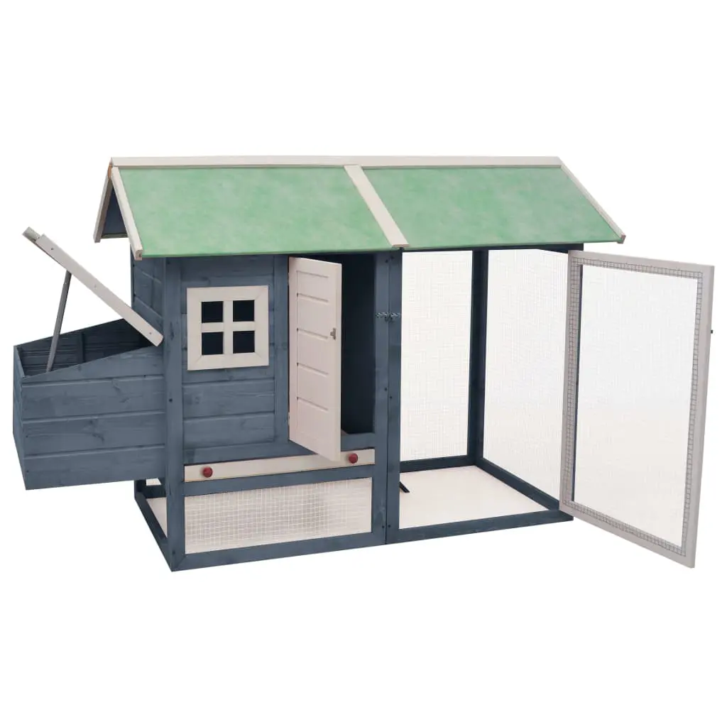 This high-quality wooden hutch provides a cosy and comfortable place for keeping small animals especially chickens to relax. The construction of iron wire mesh helps to prevent mischievous behaviors and unexpected accidents. Meanwhile, it ensures your monitoring of the chickens and enables them to get enough fresh air. This chicken house is built with high-quality wooden frame which makes it a strong and safe enclosure that lasts for years. While the green roof keeps rain away, the cubby offers the perfect sleeping area simultaneously. An easy-climb ramp leads from the lower ground level to the upper floor. A pull-out tray makes cleaning easy. The doors close easily and lock with slide-bolt latches. This wooden chicken cage is easy to assemble.