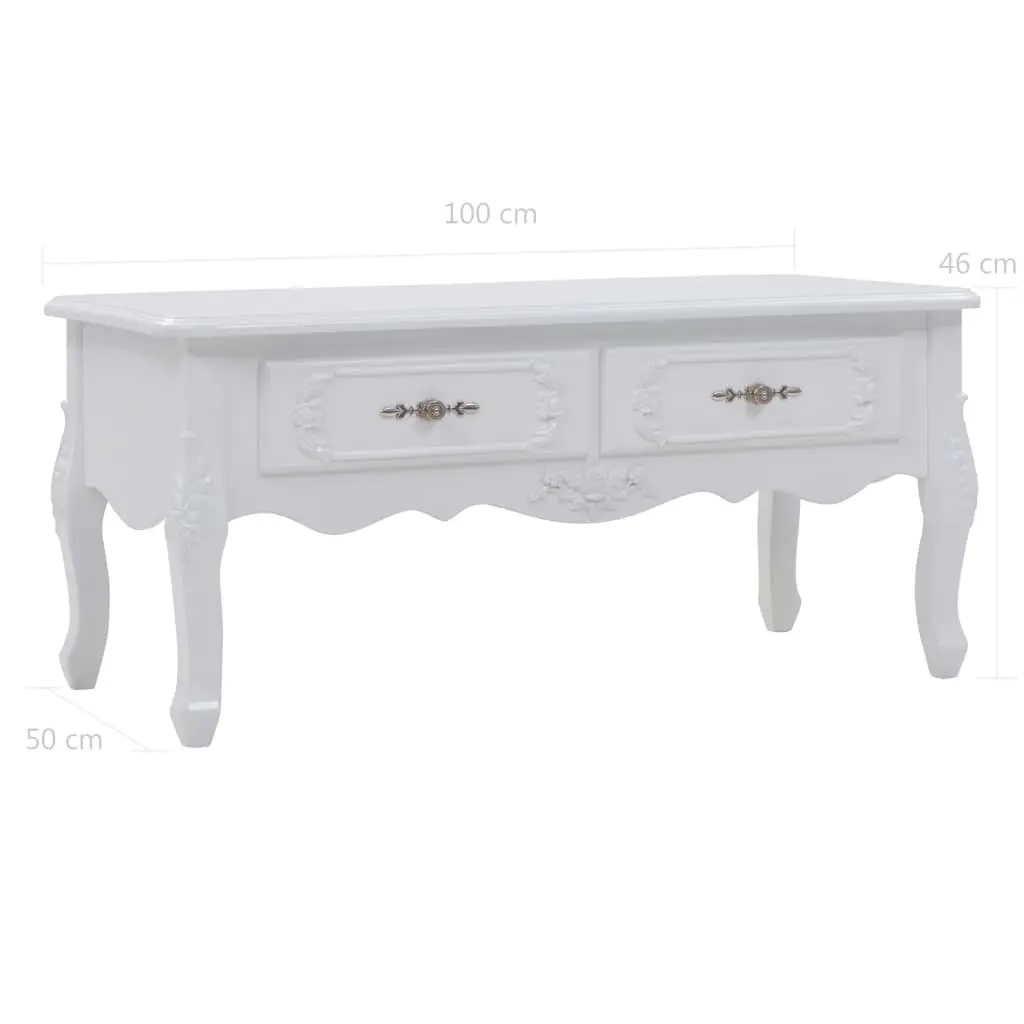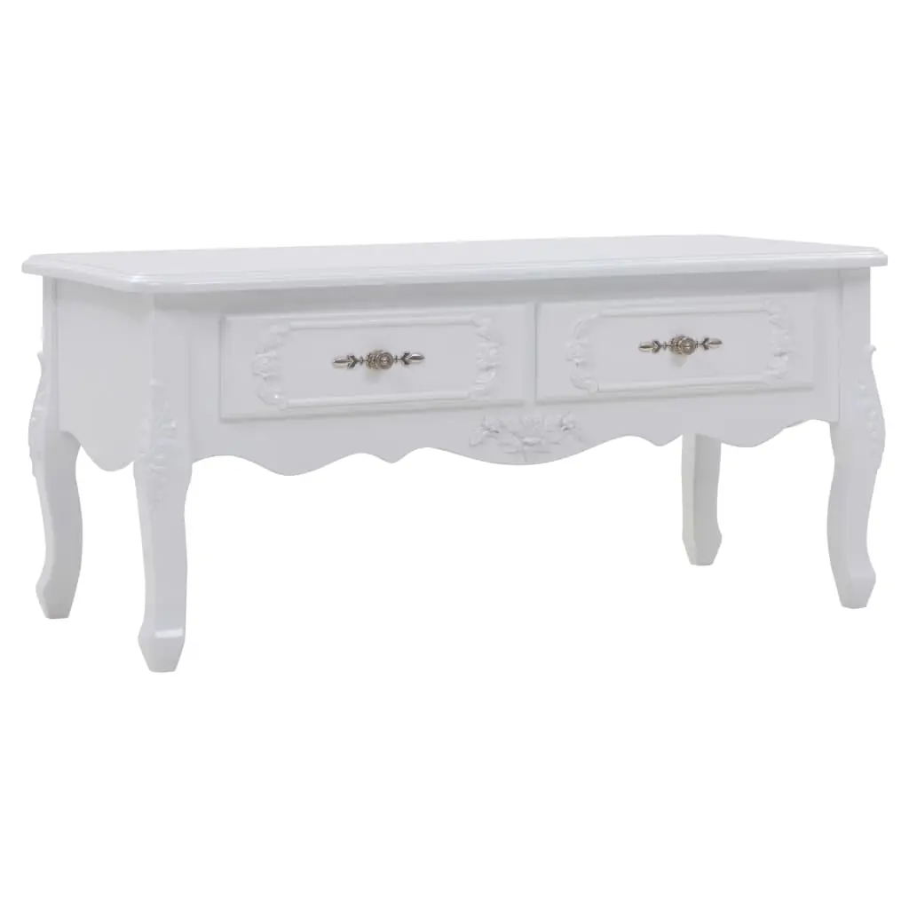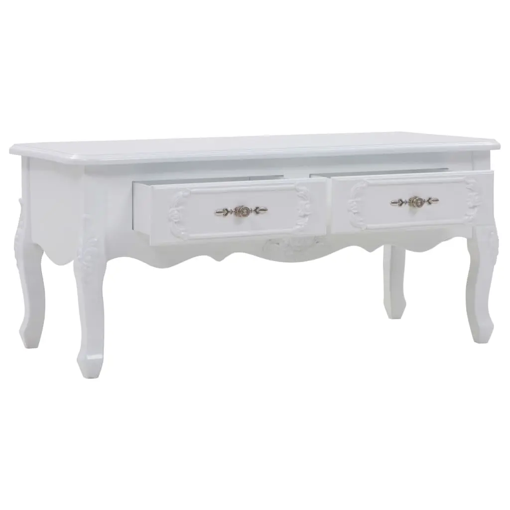 Add a touch of elegance to your home with this coffee table in a classic French country style! It can also be used as a couch table, side table, end table, console table, etc. Our coffee table has 2 smooth drawers to provide ample storage space for your personal belongings. This couch table is manufactured from medium density fibreboard (MDF), which is sturdy and durable. It is easy to clean and maintain. Our coffee table is easy to assemble.