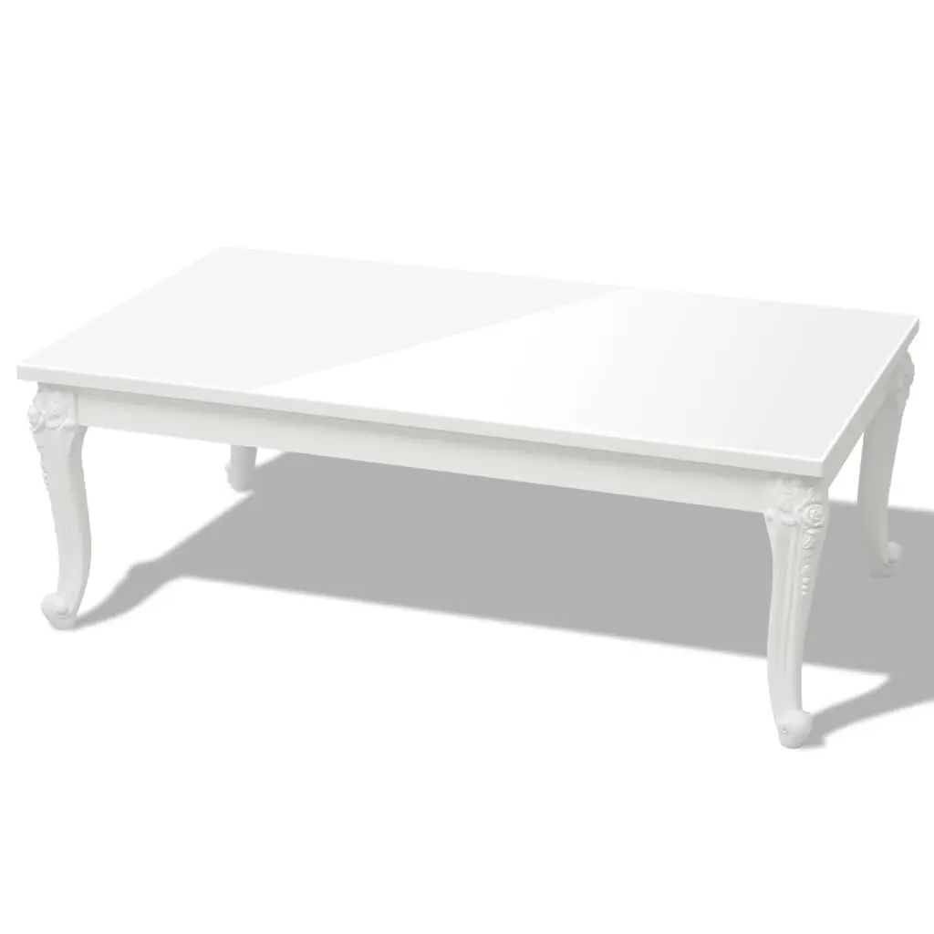 This high gloss coffee table will make a great decorative addition to your living room interior with its classic design. It can also be used as an end table or side table. The table has been manufactured from Medium Density Fibreboard (MDF). It features four stable and durable plastic legs embellished with a classic ornate pattern resembling wood carving. The high gloss coffee table is also easy to clean and maintain – only a soft, damp cloth is needed! Assembly is easy.