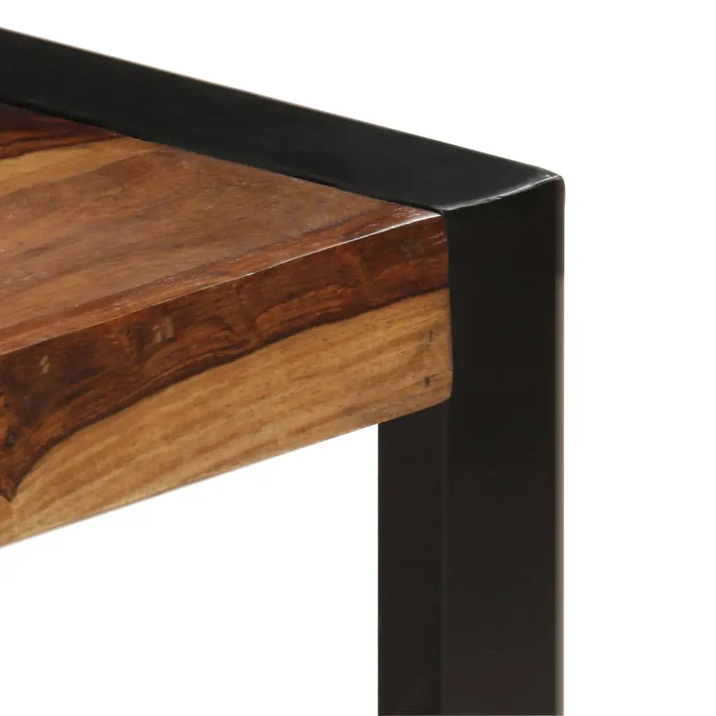 This industrial-style wooden coffee table will make a captivating addition to your living room. This couch table is made of solid Sheesham wood, enabling it highly stable and durable. Sheesham is a tropical hardwood which is not merely famous for its rich grains, but also known as rosewood or palisander. Every step of the process is carried out with the greatest care, be it polishing, painting or lacquering. The strong powder-coated steel legs add extra stability to the table. The side table is easy to assemble. Important note: The colours and grains vary from piece to piece, making each piece unique; delivery is random.