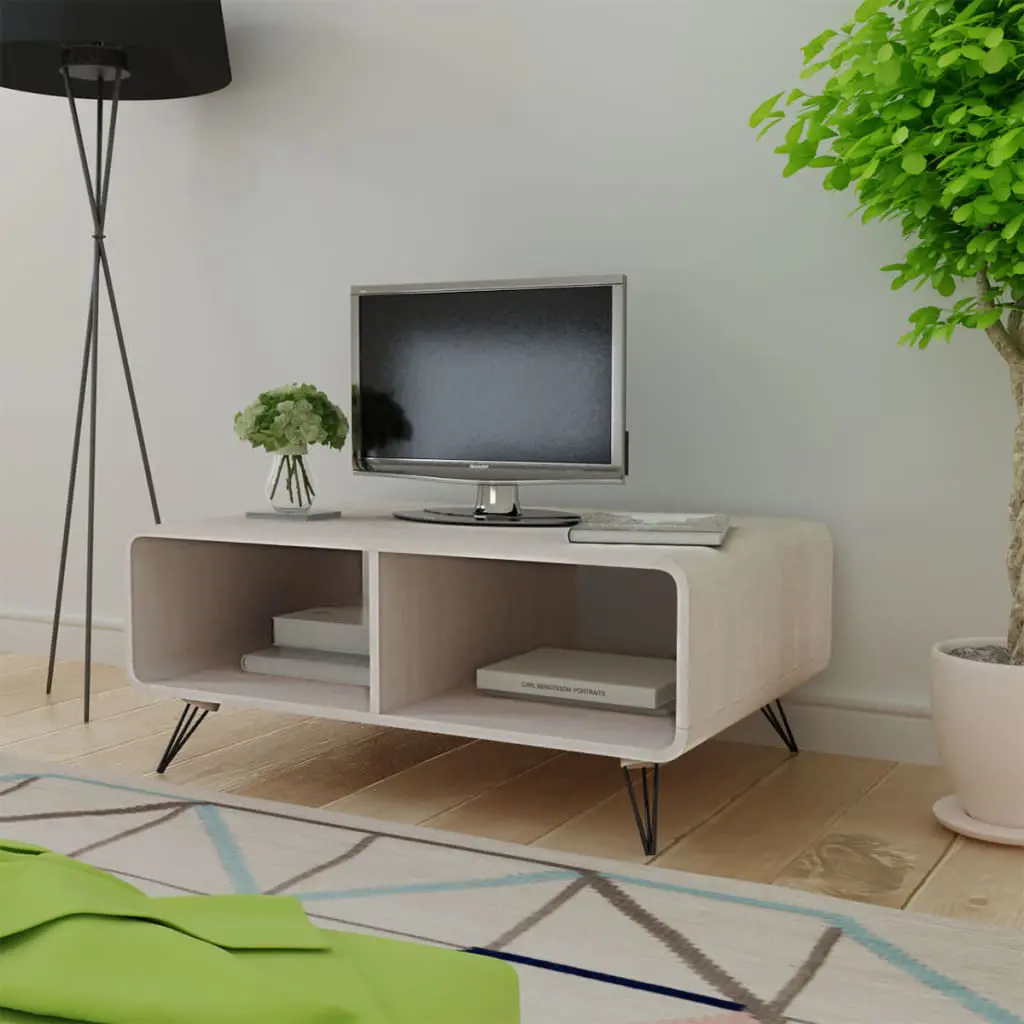 This stunning wooden coffee table with tapered steel legs has a contemporary, elegant look and feel, and will complement the furniture in your home. This practical coffee stable will help to keep your living space free of clutter thanks to its integrated storage, which will be perfect for storing multimedia appliances, books, magazines, or small items you’d like to keep within reach. Thanks to the sturdy construction with tapered steel legs, this coffee table is durable and easy to clean only with a damp cloth. It can also be used as a TV stand. Relax and enjoy entertaining your family and friends around this unique coffee table!