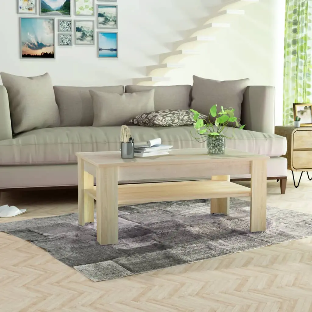 This modern coffee table has a stylish, sleek design that will suit any decor. It is made of chipboard with PVC edges and is stable and durable. The drawer and the lower shelf provide ample space for storing books, magazines and other items you’d like to keep within reach, and add to the coffee table’s practicality as well as its modern look. Assembly is easy.