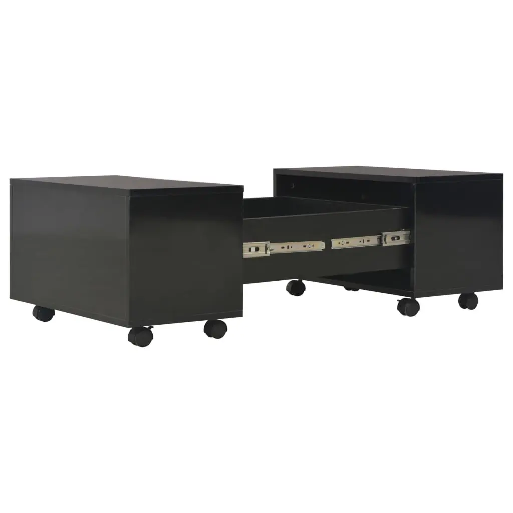 Bring the luxury of elegant charm to your interior with our stylish coffee table! The couch table is made of chipboard with a high gloss finish, giving it a refined look, and making it exceedingly stable and durable. This coffee table can be extended from both sides which provides ample space for keeping your magazines, books, remote control, as well as various other small items within reach. Additionally, thanks to the wheels, the storage table is easy to move. The tea table is easy to be assembled.