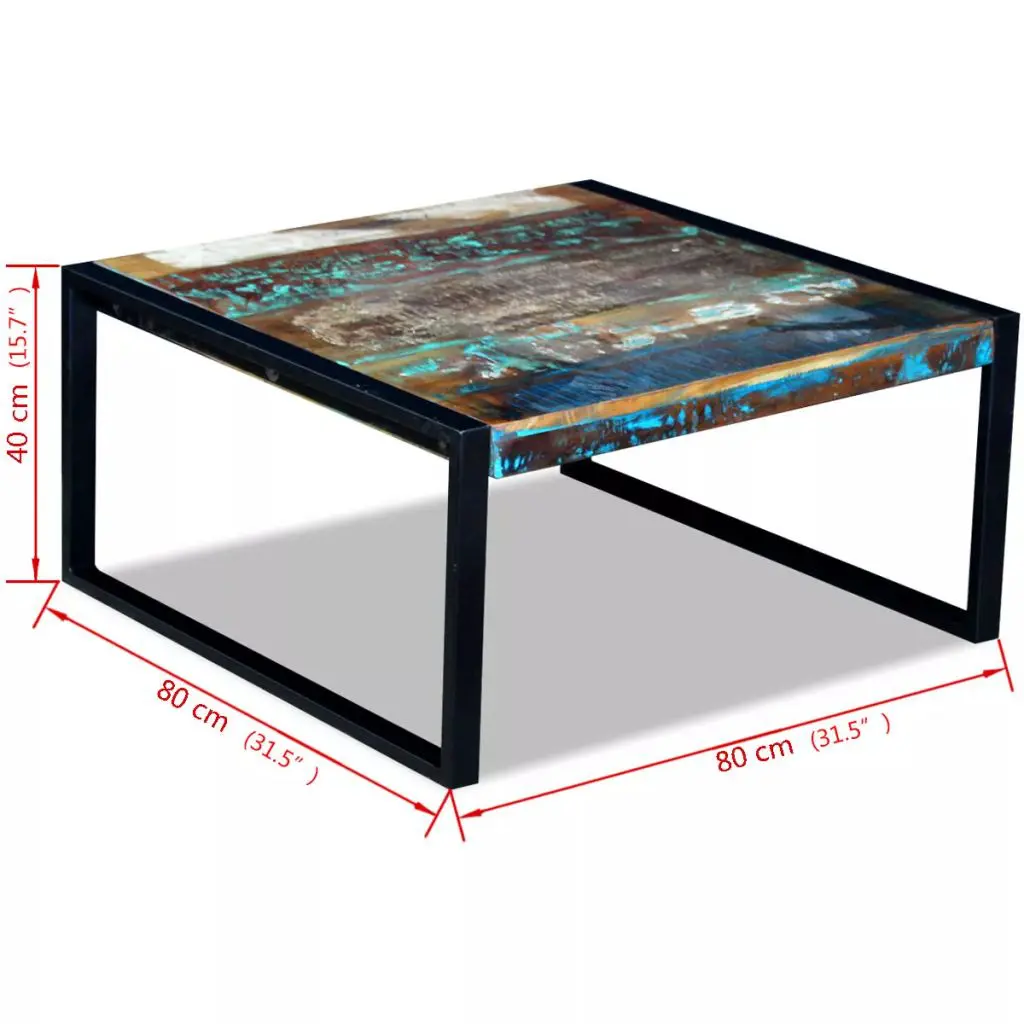 This antique-style wooden coffee table will make a unique addition to your living room. Its solid wood top and strong steel frame make it a stable and secure space on which you can place your drink, or a vase, fruit basket or decorative items. It can also be used as a couch table, living room table, and side table, end table, etc. The tabletop is made of solid reclaimed wood, which means that every piece of furniture is unique and slightly different from the next. Furniture made from reclaimed wood has the characteristics of different woods like sheesham, teak, palisander, mango wood and acacia. Reclaimed wood is solid, stable, durable, and beautiful. Signs of wear and visible grain structure give each piece its own history and a unique look. The coffee table is fully handmade, and the craftsmanship adds to its spectacular retro style. Every step of the process is carried out with the greatest care, be it recombining, polishing, painting or waxing. Important note: Colours vary from piece to piece, making each of our side tables unique. The delivery is random.