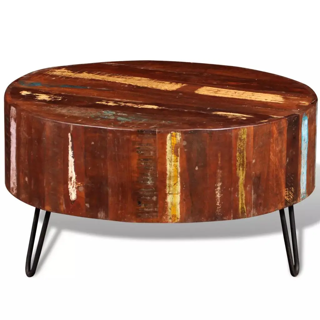 This antique-style reclaimed solid wooden coffee table is a timeless living accessory for your home. Its solid wood top provides a generous surface for placing your glasses, vases, fruits or ornaments on. And robust iron pin legs make the table stable and secure. This exotic coffee table is made from reclaimed wood, which means that every piece of furniture is unique and slightly different from each other. The furniture made from reclaimed wood has characteristics of different wood like teakwood, sheesham wood, acacia, mango wood, saal wood etc. Reclaimed wood is solid, stable, durable and beautiful. The nail holes or clear-faced grains bring their history with them and invite another generation to permeate them with their own. Keeping this piece of furniture at home will show your concept of resource conservation, environment protection and sustainable development. Pure handmade craftsmanship adds the vintage spectacular style to the coffee table and feasts you with exoticism. Every process of recombining, polishing, painting and waxing is elaborately prepared. Relax with your family and friends around this unique and original coffee table! Important note: Colours vary from piece to piece, making each of our coffee tables unique; the delivery is random.