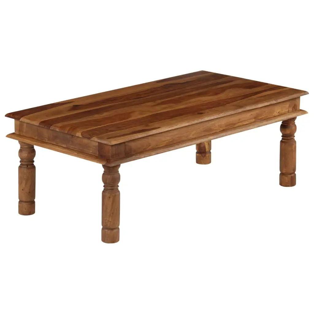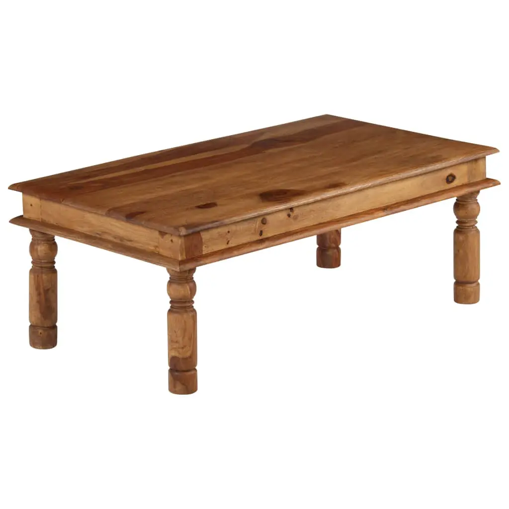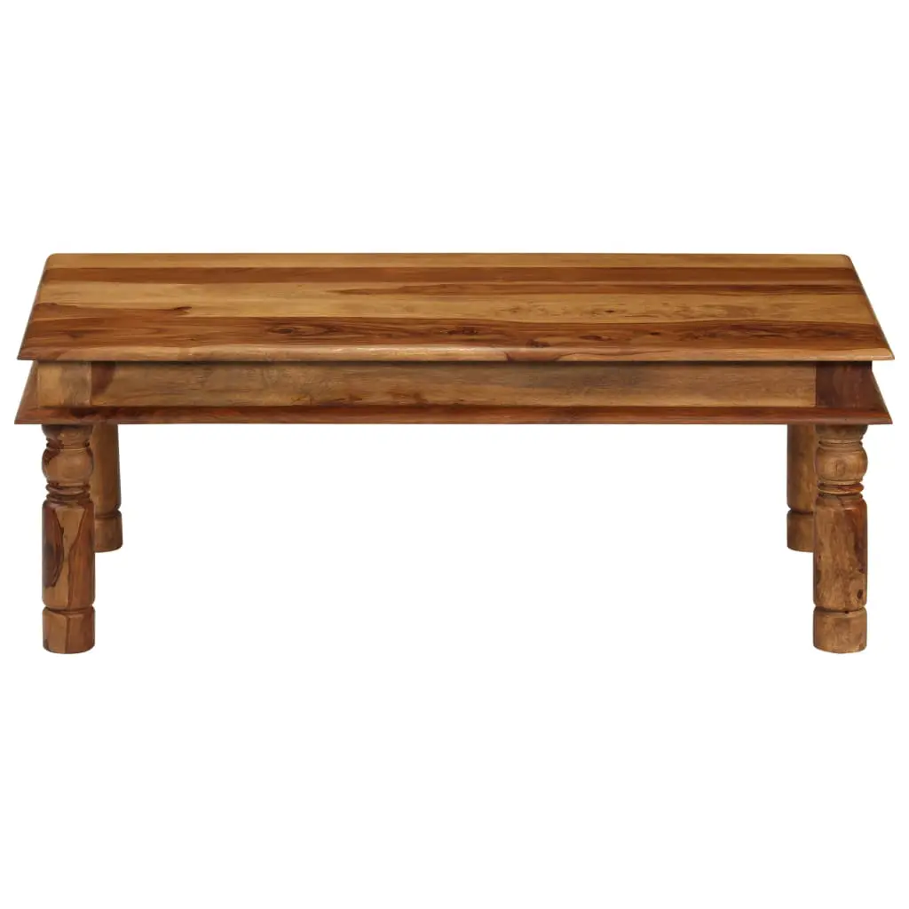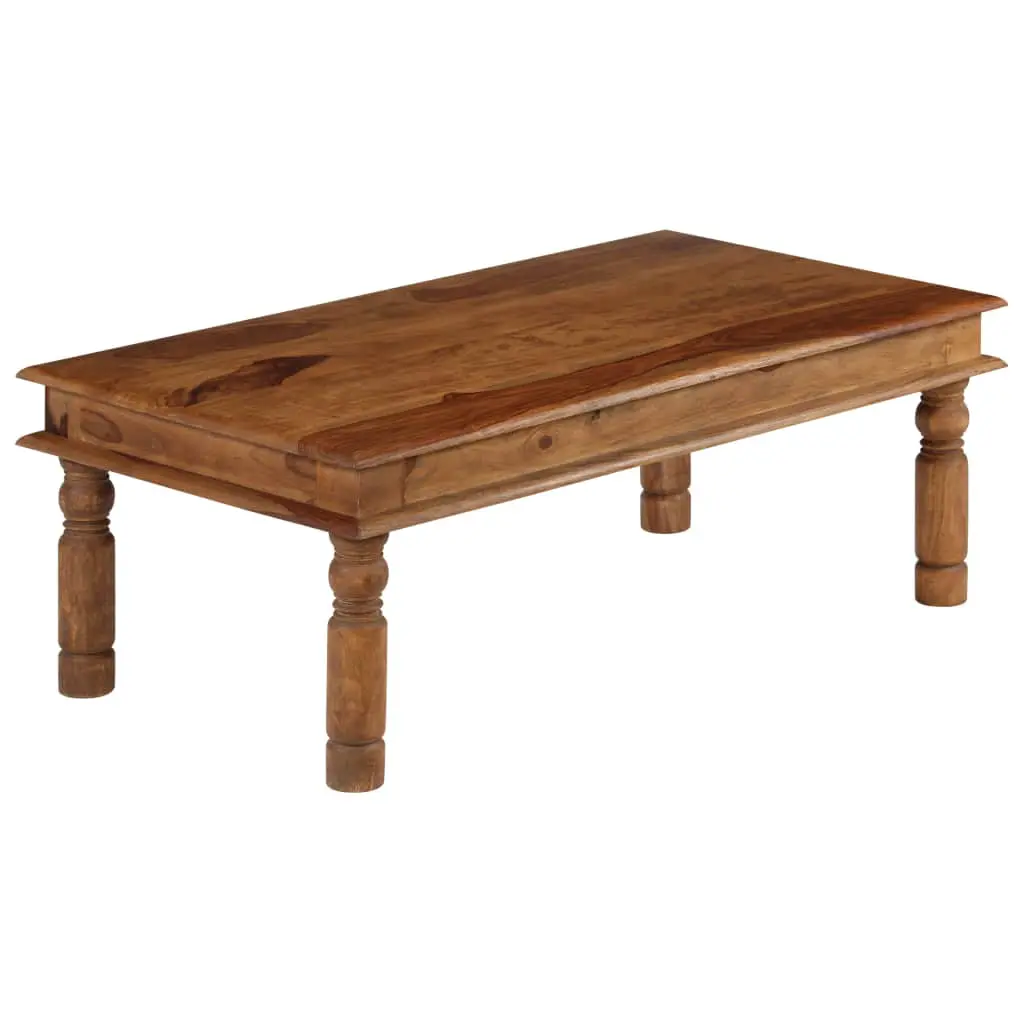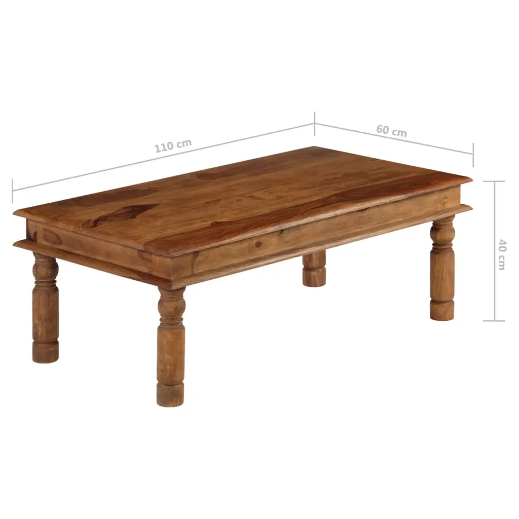 Our solid Sheesham wood coffee table exudes a vintage charm and will make a distinctive addition to your home with its unique colonial style design. It can also be used as a side table, couch table and end table. This wooden table is made of solid Sheesham wood, which is durable and beautiful. Sheesham is a tropical hardwood that is famous for its rich grains and also known as rosewood or palisander. Every step of the process is carried out with the greatest care, be it polishing, painting or lacquering. The craftsmanship and the beautiful wood grains make every piece of furniture unique and slightly different from the next. It features a sturdy tabletop and its simple elegant style will add charm to your living room. This item is easy to assemble. Important note: The wood grains and colours may vary from piece to piece, making each of our coffee tables unique; the delivery is random.