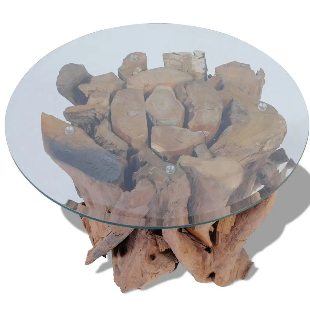 - Material: Solid teak driftwood base + tempered glass tabletop