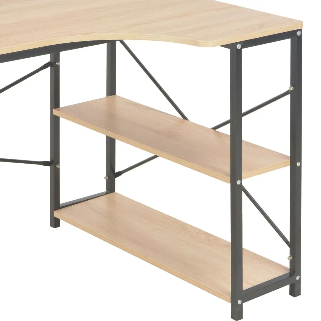 Like all the best design, our simple yet stylish computer desk is clean, space-saving, and sure to never date. It provides a large working area, making it very practical, convenient and versatile piece of furniture for use at home or in the office. The L-shaped desk is designed with two shelves for organizing your books, folders, documents or displaying decorative items. Made of chipboard and powder-coated metal, the writing desk is exceedingly stable, sturdy and durable. Additionally, the metal frame endows the desk an industrial style, bringing a touch of unique charm to your interior. Upgrade your interior to the next level with our modern office desk!