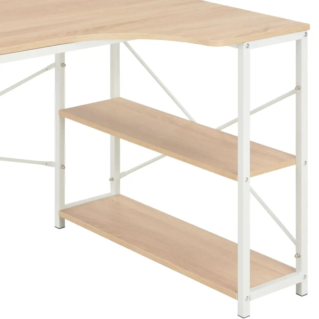 Like all the best design, our simple yet stylish computer desk is clean, space-saving, and sure to never date. It provides a large working area, making it very practical, convenient and versatile piece of furniture for use at home or in the office. The L-shaped desk is designed with two shelves for organizing your books, folders, documents or displaying decorative items. Made of chipboard and powder-coated metal, the writing desk is exceedingly stable, sturdy and durable. Additionally, the metal frame endows the desk an industrial style, bringing a touch of unique charm to your interior. Upgrade your interior to the next level with our modern office desk!