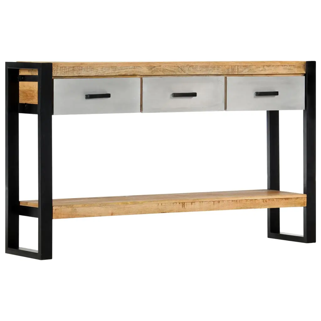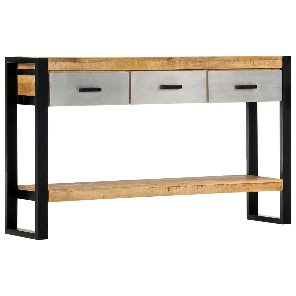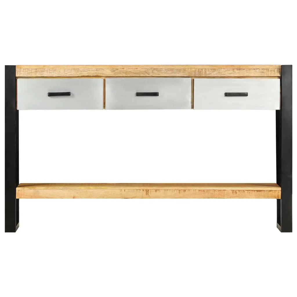 Add a touch of elegance to your home décor with our classic wooden console table! Made of solid mango wood, this console table will make a great addition to your interior. It can be used as a side table, sideboard, hall table, table under mirror, etc. Made of solid rough mango wood, the table has a sturdy tabletop, on which you can place decorative items like fruit baskets or vases. Sturdy metal legs guarantee its stability and durability, ensuring years of service. Mango wood is a dense and robust hardwood which has beautiful brown or golden streaks and contours on its surface. Every step of the process is carried out with the greatest care, be it polishing, painting or lacquering. Additionally, it includes 3 drawers and bottom rack, providing ample space for keeping all kinds of smaller items or other essentials organised and within easy reach. Important note: Colours vary from piece to piece, making each of our console table unique; the delivery is random.