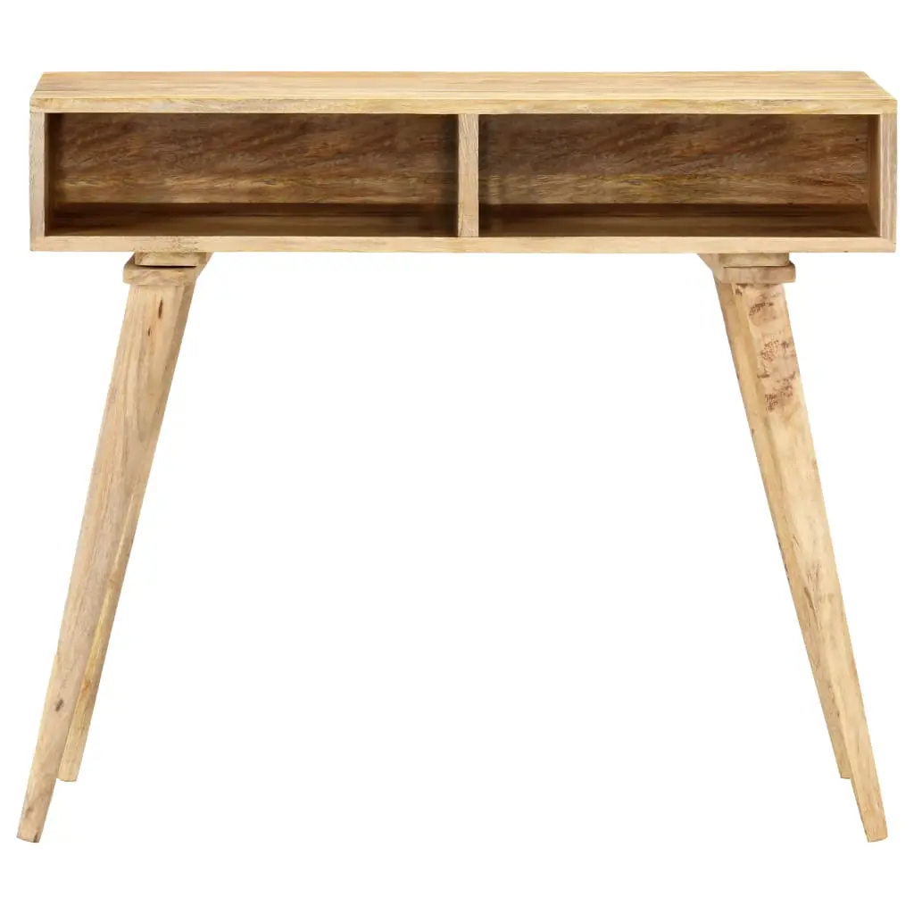 This wooden console table exudes a modern charm and will be the centre of attraction for your interior. Made of solid mango wood, this entryway table is exceedingly stable and durable. Mango wood is a dense and robust hardwood which has beautiful brown or golden streaks and contours on its surface. Every step of the process is carried out with the greatest care, be it polishing, painting or lacquering. Additionally, this hall table features 2 open compartments, providing ample space for storing your multimedia devices, books, as well as various other items. Important note: The wood grains vary from piece to piece, making each piece unique; the delivery is random. Assembly is required.