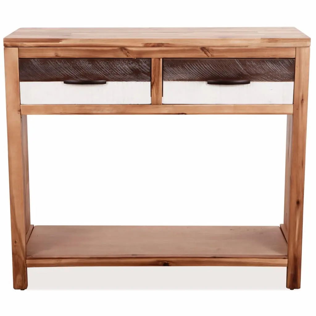 This wooden console table will make a great addition to your living room decor. The table is crafted from solid acacia wood, which makes it very sturdy and durable. The drawer fronts have been painted in contrasting black and white, which gives the table a unique look. The sturdy top is ideal for placing fruit baskets, vases or other decorative items. The drawers and the shelf provide ample space for keeping various items neatly organised. Assembly is easy. Important note: The colours and wood grains may vary from piece to piece, making each item unique and slightly different from the next; the delivery is random.