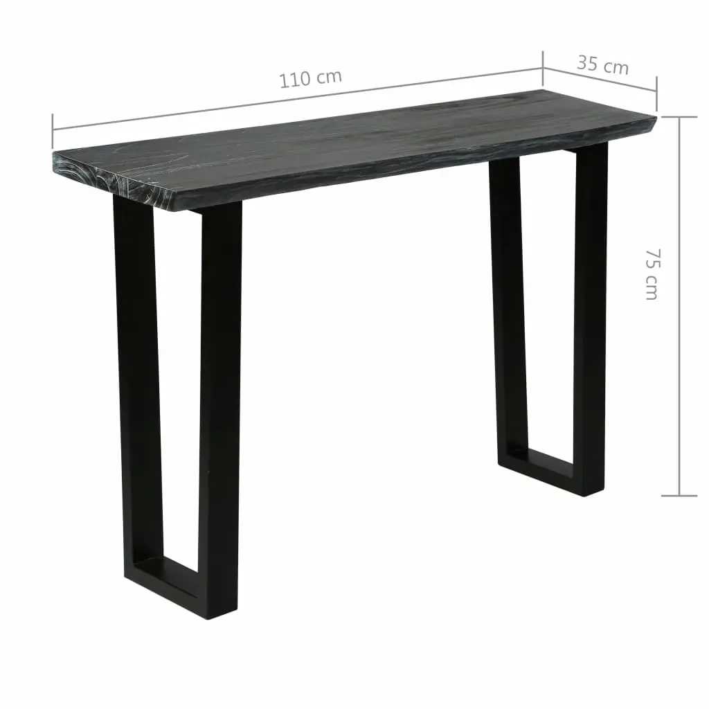 The console table will make a timeless addition to your living room decor.Constructed from solid mindi wood and sturdy steel frames, the table is highly stable and durable. The table features naturally shaped live edges which give the table a touch of rustic charm. The top is ideal for placing various decorative items like vases and potted plants. The steel frames add to the table’s sturdiness as well as to its industrial style. Every step of the construction process is carried out with the greatest care, be it sanding, painting and lacquering. Assembly is easy. Important note: The colours and grains of the wood may vary from piece to piece, making each piece unique and slightly different from the next; the delivery is random.