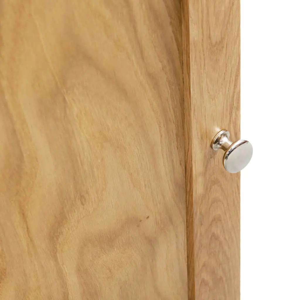 This wooden corner cabinet is ideal for small spaces where making the most of every corner is a must. It will be ideal for any kitchen, lounge, sitting room or dining room. Made of solid oak and MDF with oak veneer, this corner cabinet is sturdy and durable and will perfectly fit into any 90-degree corner. It has ample storage space for keeping your various household and decorative items like books, cups, potted plants, etc. neatly organised and within reach. The corner cabinet is easy to assemble.