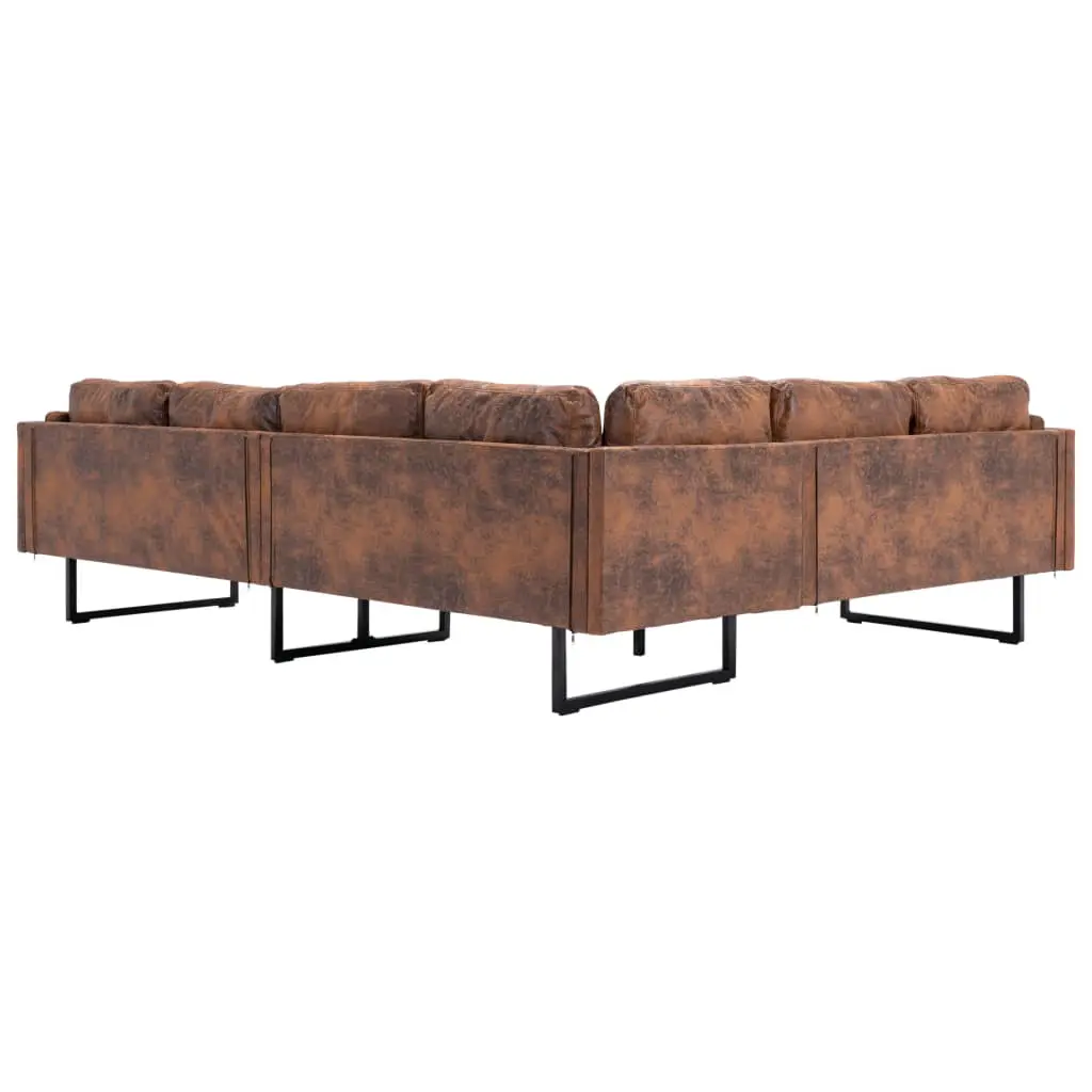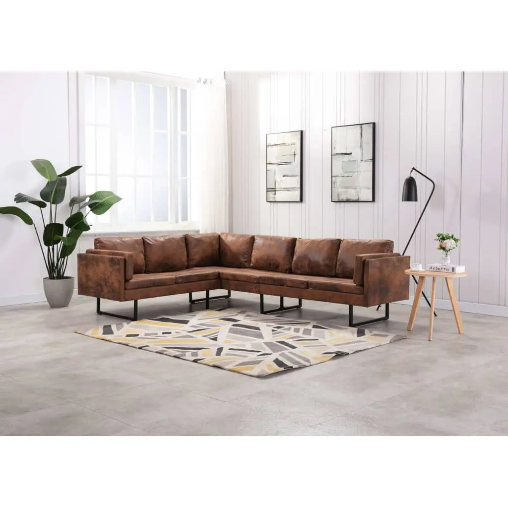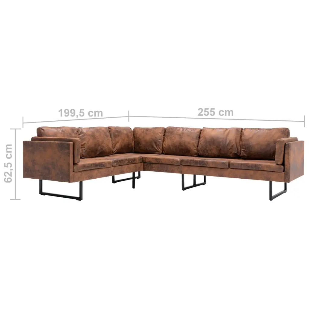 This artificial leather corner sofa is the perfect blend of comfort and sophistication and will make a great addition to any home or office. The thick seat cushions and backrest pillows are highly comfortable, while the elegant structure is sturdy and durable. Made of MDF, plywood, steel and faux suede leather, it is durable, easy to clean and hard-wearing. This product is easy to assemble.